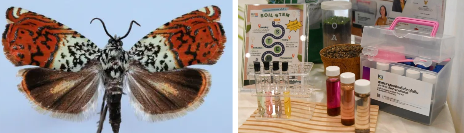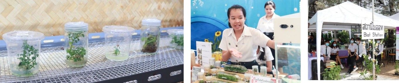 จัดแสดงนวัตกรรมระบบบำบัดน้ำเสียร้านอาหารเพื่อธุรกิจสีเขียวและการจัดการน้ำอย่างยั่งยืน นวัตกรรมการขยายพันธุ์กล้วยเศรษฐกิจด้วยระบบ Bioreactor Artocarpus lacucha สารสกัดจากมะหาดเพื่อสุขภาพและความงาม การใช้ประโยชน์ผลพลอยได้จากอุตสาหกรรมฟอกหนังต่อการเจริญเติบโต ผลผลิตของมันสำปะหลังและสมบัติดินบางประการ การกักเก็บคาร์บอนและการบำรุงสุขภาพดินด้วยพืชคลุมดิน การให้บริการตรวจวิเคราะห์น้ำ/น้ำเสีย สมุนไพรไทย พรีไบโอติกเพื่อชีวิตดี “หล่อฮังก๊วย” หวานอย่างปลอดภัย ทางเลือกใหม่ของความหวาน สมุนไพร(ไม่)ใช่แค่...ทำยา นานาพรรณไม้หอม ECO PRINTING บนผืนผ้าอย่างง่าย พวงกุญแจเรซิ่นดอกไม้ จากหลอดแก้วสู่แปลงปลูก “การย้ายปลูกไม้ประดับและกล้วยเศรษฐกิจ”