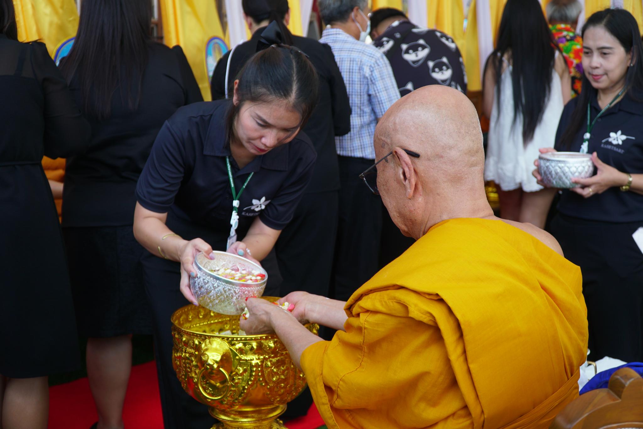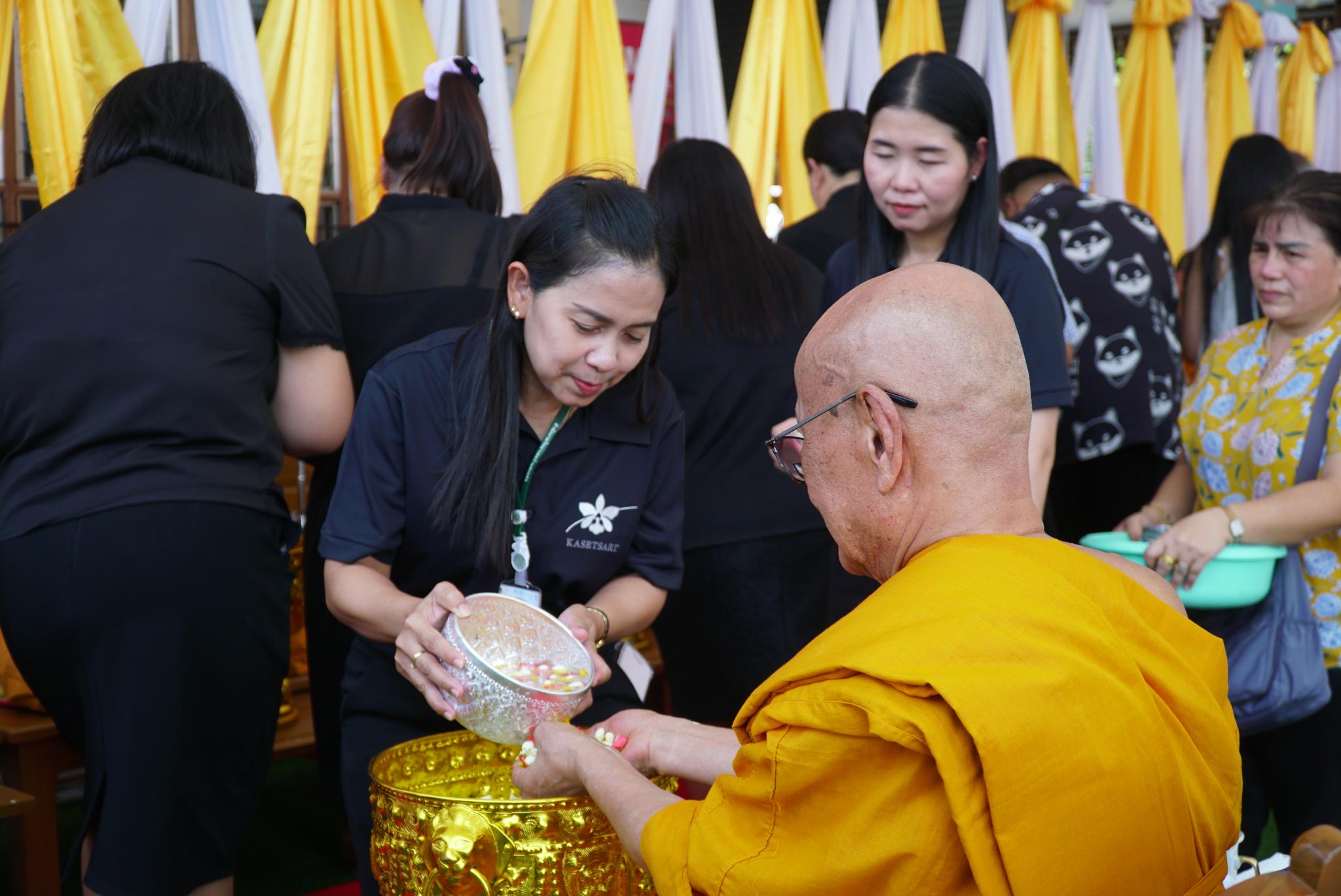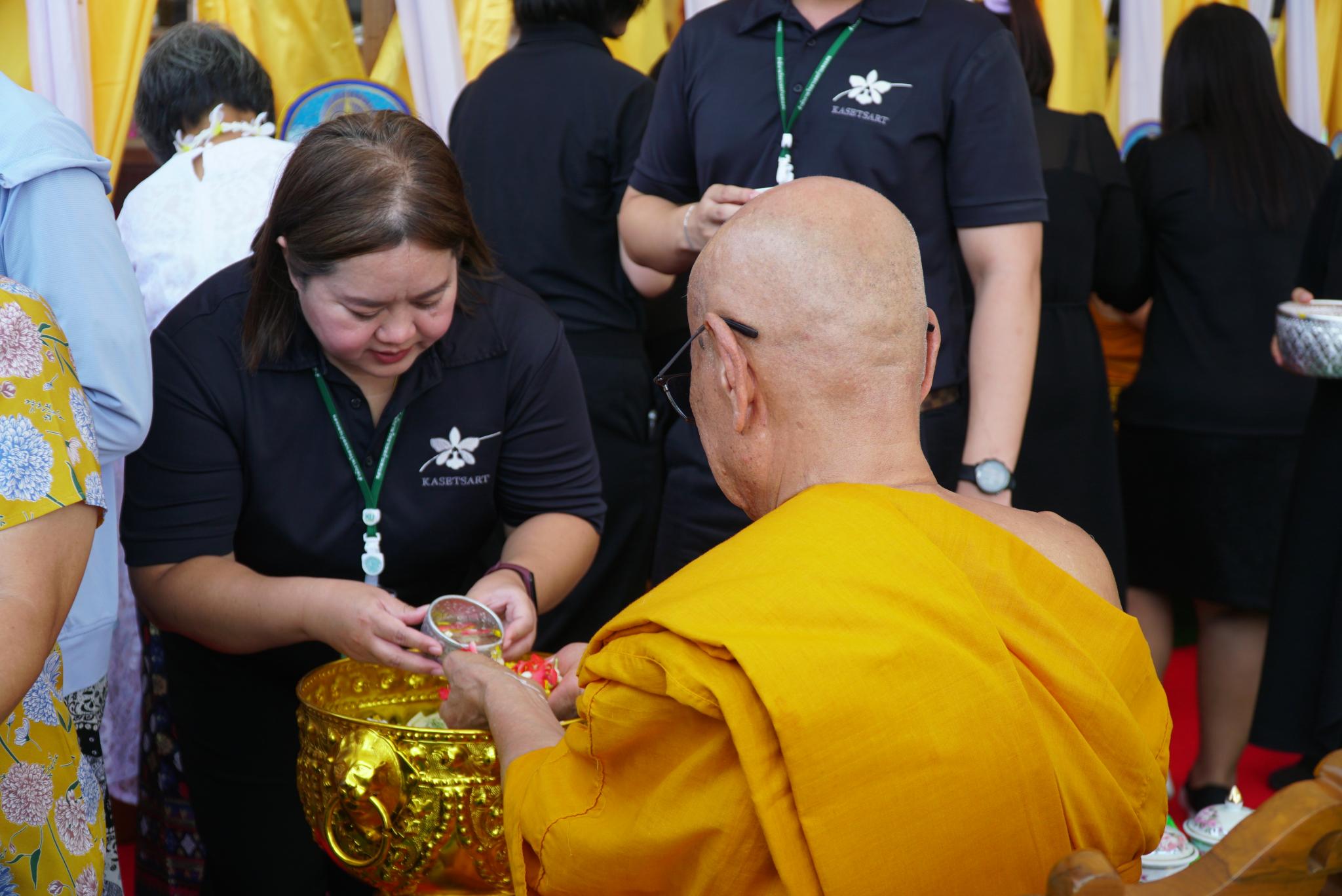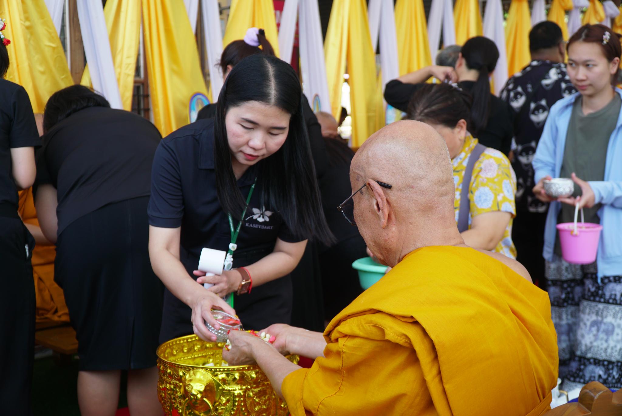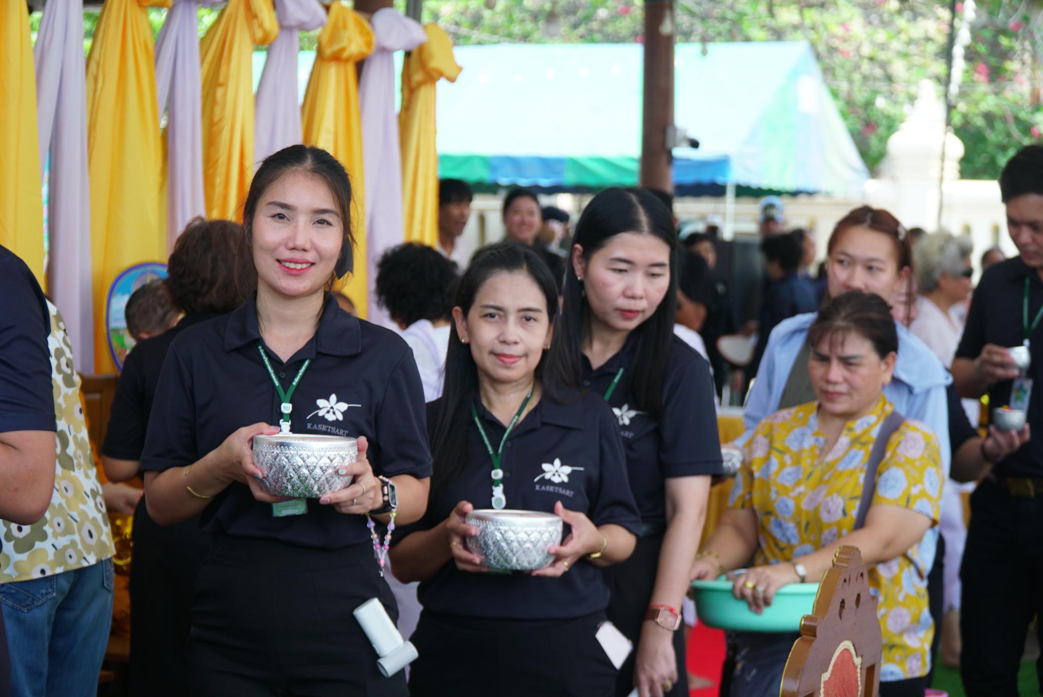 มหาวิทยาลัยเกษตรศาสตร์ วิทยาเขตกำแพงแสน โดย รองศาสตราจารย์ นายสัตวแพทย์ ดร.อนุชัย ภิญโญภูมิมินทร์ รองอธิการบดีวิทยาเขตกำแพงแสน มอบหมายให้ นางสาวมัสยา ฐาปนพันธ์นิติกุล ผู้อำนวยการสำนักบริหารจัดการทรัพยากรการเรียนรู้ และนางสาวอโรชา ทองลาว ผู้อำนวยการกองบริหารทรัพย์สิน นำบุคลากรเข้าร่วมพิธีถวายผ้าอาบน้ำฝน และสรงน้ำพระสงฆ์ เนื่องในประเพณีสงกรานต์ ประจำปี 2569 เมื่อวันพฤหัสบดีที่ 16 เมษายน 2569 ณ บริเวณด้านหน้าศาลากองอำนวยการ องค์พระปฐมเจดีย์ จังหวัดนครปฐม โดยมี นางสาวอโรชา นันทมนตรี ผู้ว่าราชการจังหวัดนครปฐม เป็นประธานในพิธี การจัดกิจกรรมในครั้งนี้มีวัตถุประสงค์เพื่อร่วมสืบสานวัฒนธรรมประเพณีอันดีงามของไทย เสริมสร้างความเป็นสิริมงคล และอนุรักษ์และทำนุบำรุงศิลปวัฒนธรรมไทยให้คงอยู่สืบไป