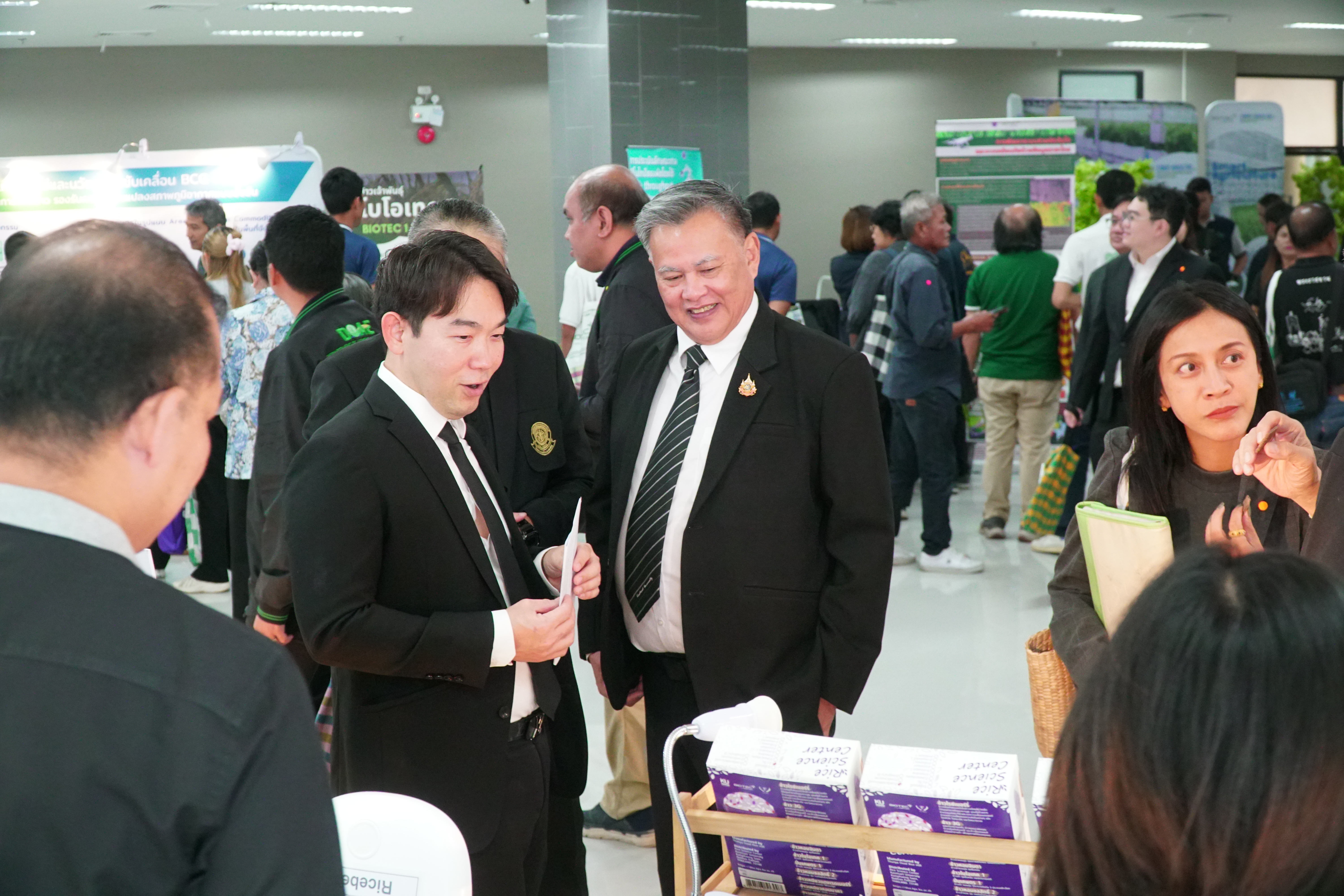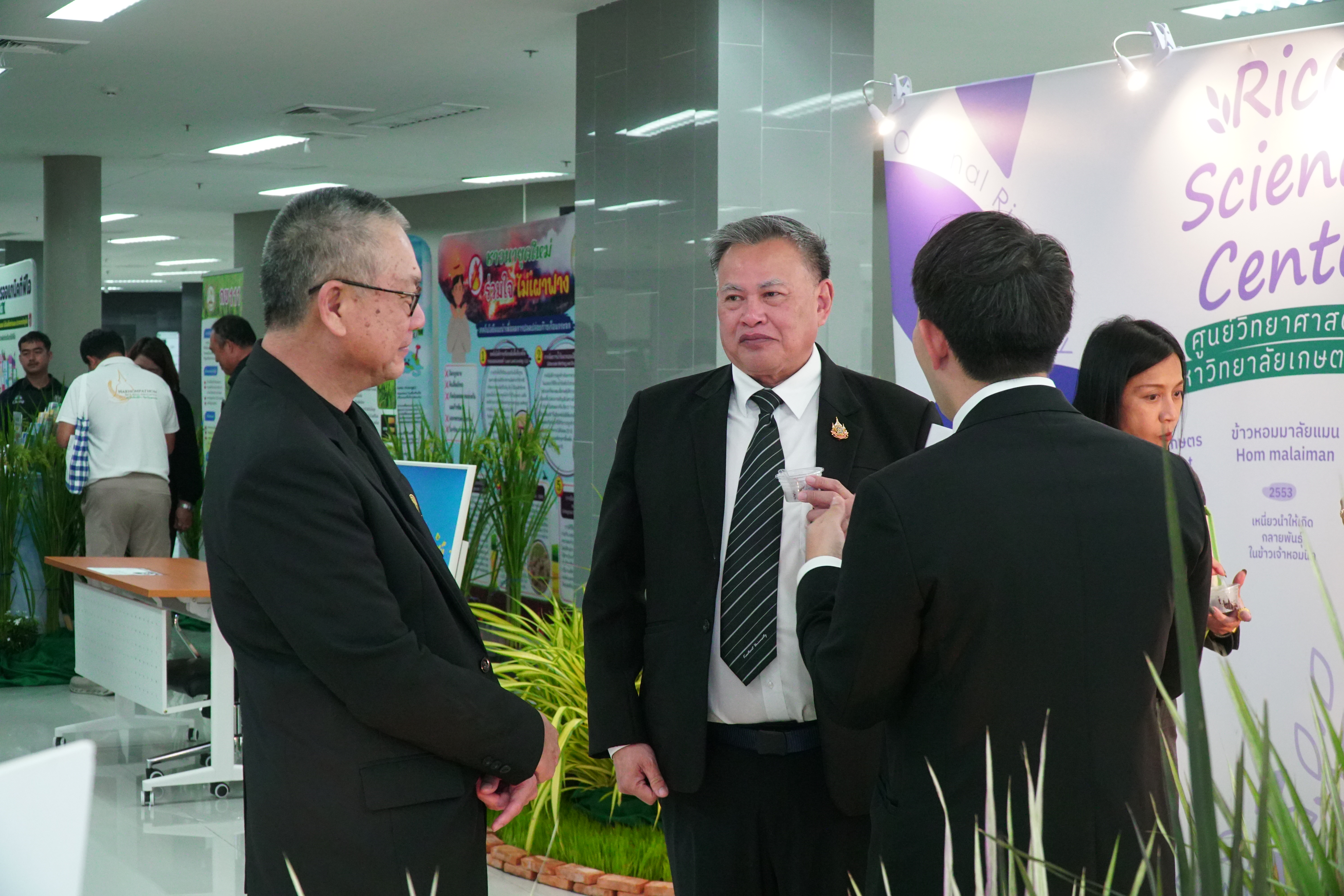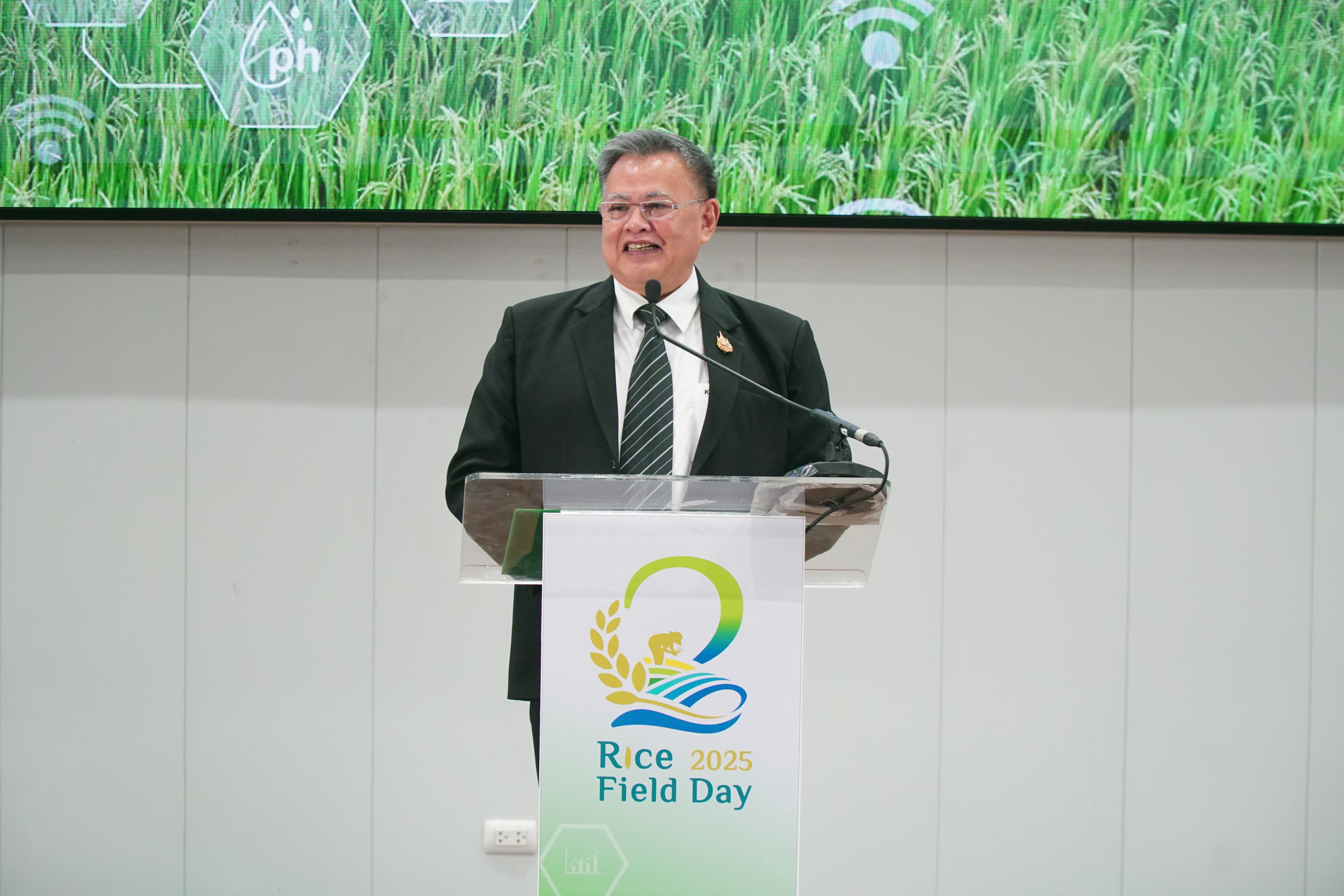 ดร.ดำรงค์ ศรีพระราม รักษาการแทนอธิการบดีมหาวิทยาลัยเกษตรศาสตร์ เป็นประธานเปิดงานจัดแสดงพันธุ์ข้าว "NSTDA-KU Rice Field Day 2025" ข้าว 2.0 (ตัน) ปลูกอย่างแม่นยำ ผลิตอย่างยั่งยืน เมื่อวันพฤหัสบดีที่ 6 พฤศจิกายน 2568 ณ มหาวิทยาลัยเกษตรศาสตร์ วิทยาเขตกำแพงแสน โดย รองศาสตราจารย์ ดร. ศิวเรศ อารีกิจ ผู้อำนวยการศูนย์วิทยาศาสตร์ข้าว เป็นผู้กล่าวต้อนรับ และ ผู้ช่วยศาสตราจารย์ ดร. เชาวรีย์ อรรถลังเป็นผู้กล่าวรายงานวัตถุประสงค์การจัดงาน ซึ่งการจัดงานในครั้งนี้เกิดจากความร่วมมือกันระหว่างศูนย์วิทยาศาสตร์ข้าว มหาวิทยาลัยเกษตรศาสตร์ ศูนย์พันธุวิศวกรรมและเทคโนโลยีชีวภาพแห่งชาติ สำนักงานพัฒนาวิทยาศาสตร์และเทคโนโลยีแห่งชาติ (สวทช.) กรมการข้าว และภาคีเครือข่ายศูนย์กลางความรู้ด้านวิทยาศาสตร์และการวิจัยข้าวของประเทศไทย (Hub of Rice) โดยมีวัตถุประสงค์หลัก เพื่อเป็นการแสดงศักยภาพด้านเทคโนโลยีและนวัตกรรมการปรับปรุงพันธุ์ข้าวที่มุ่งเน้นผลผลิตสูง 1.5 – 2 ตันต่อไร่ อายุการเก็บเกี่ยวสั้น 90 – 100 วัน รวมถึงพันธุ์ข้าวพร้อมใช้ที่รองรับกับสภาพแวดล้อมวิกฤตและการใช้ปัจจัยการผลิตอย่างมีประสิทธิภาพ เป็นมิตรต่อสิ่งแวดล้อม การจัดงานในครั้งนี้ได้รับความสนใจจากนิสิต นักศึกษา นักวิจัย นักวิชาการ คณาจารย์ บุคลากรของมหาวิทยาลัยและองค์กรที่เกี่ยวข้องกับการวิจัย ผู้ประกอบการกลุ่มธุรกิจ การสีข้าวและส่งออกข้าว เกษตรกร เครือข่ายเกษตรกร ประชาชน และผู้สนใจทั่วไป เข้าร่วมงานเป็นจำนวนมาก