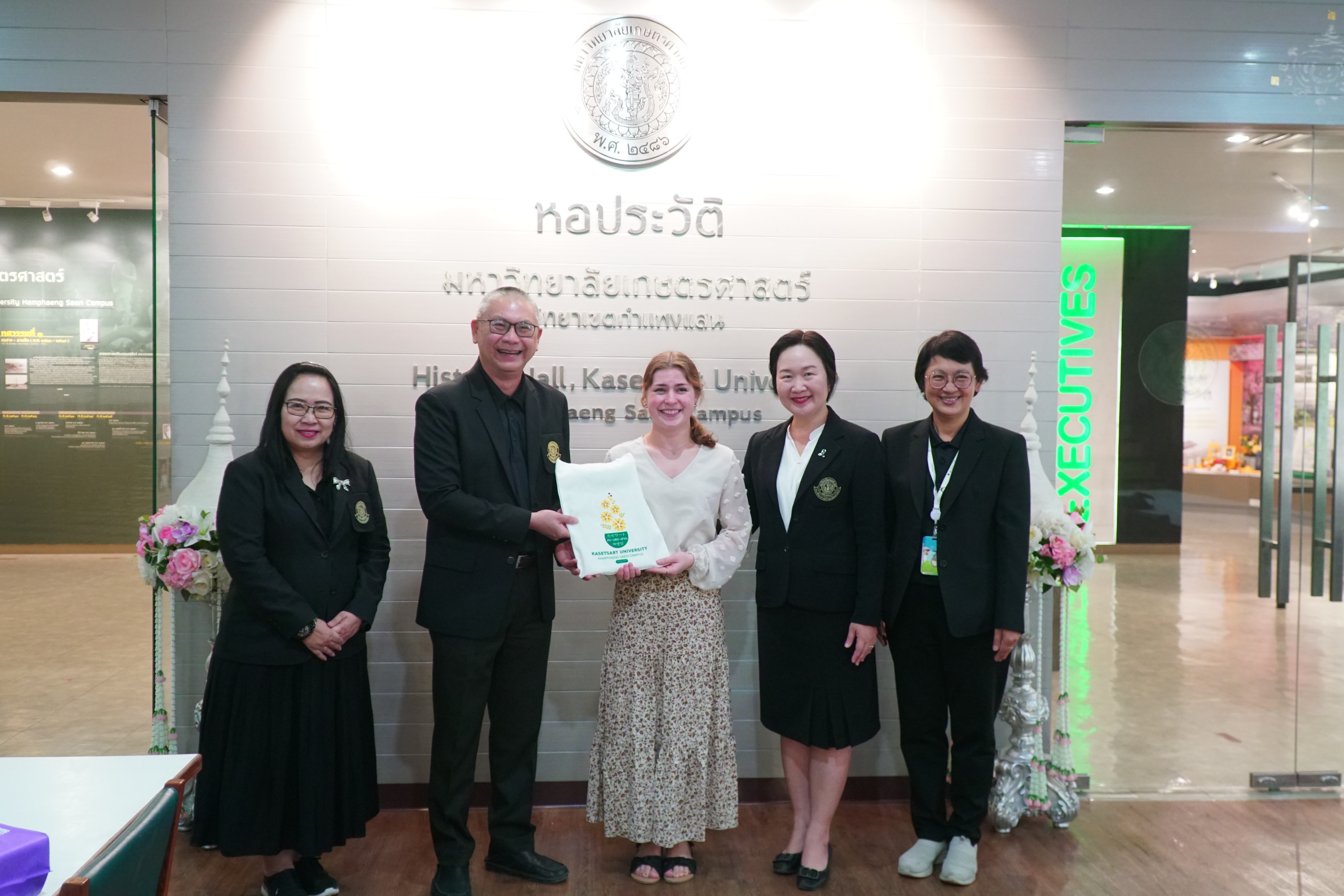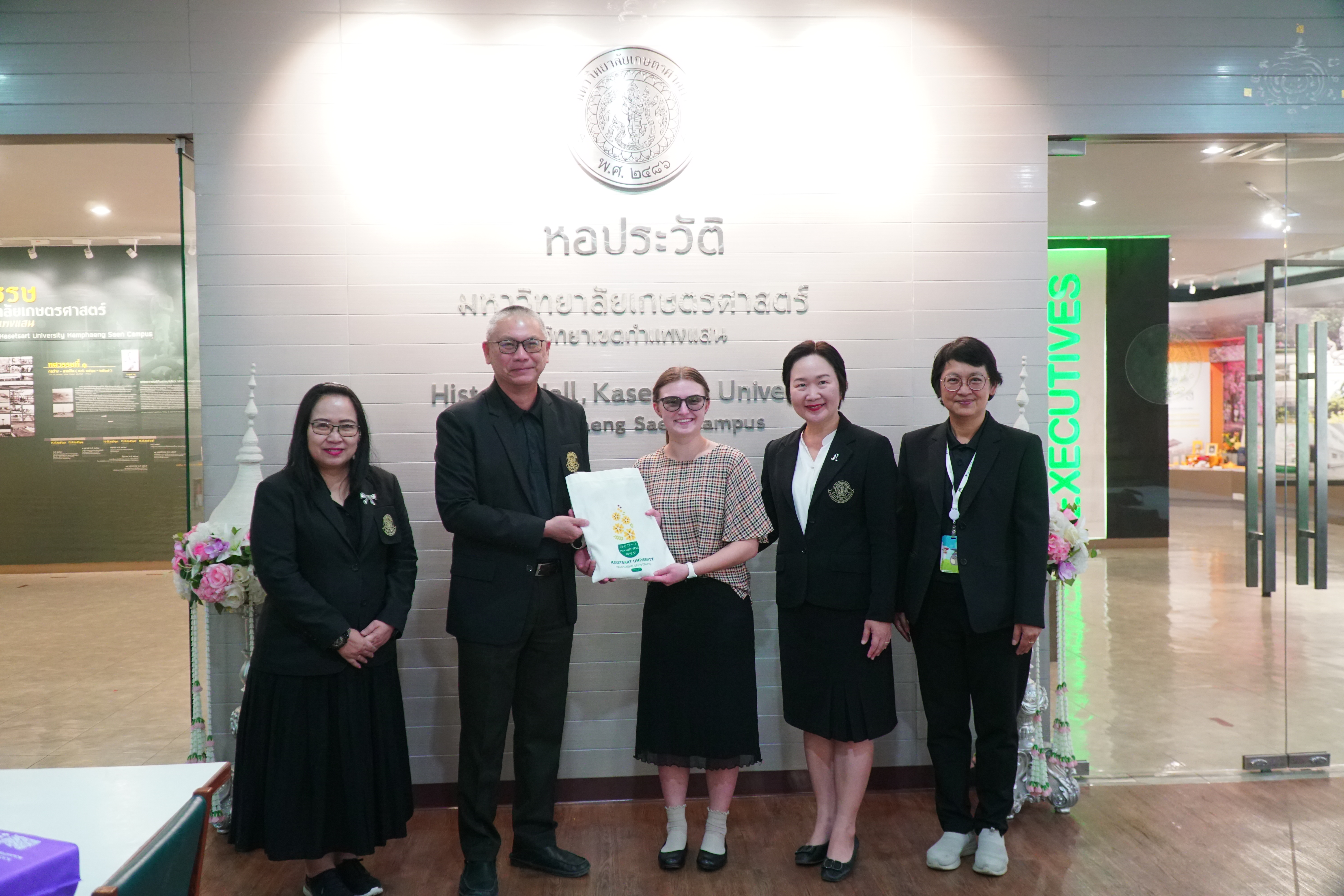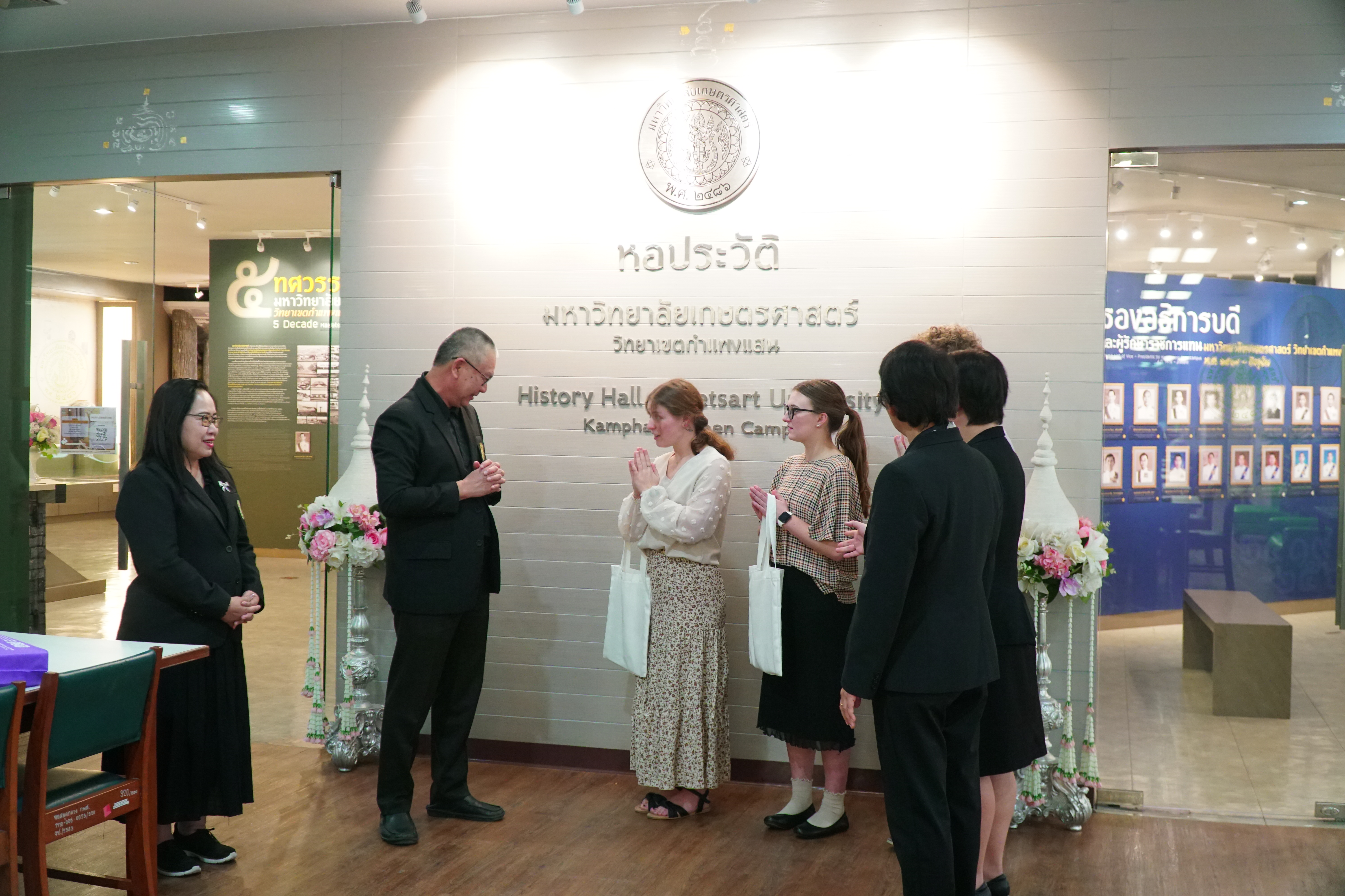 มหาวิทยาลัยเกษตรศาสตร์ วิทยาเขตกำแพงแสน โดย รองศาสตราจารย์ นายสัตวแพทย์ ดร.อนุชัย ภิญโญภูมิมินทร์ รองอธิการบดีวิทยาเขตกำแพงแสน พร้อมด้วยผู้ช่วยศาสตราจารย์ ดร.สุกัญญา รัตนทับทิมทอง ผู้ช่วยอธิการบดีฝ่ายวิจัย บริการวิชาการ และวิเทศสัมพันธ์ วิทยาเขตกำแพงแสน ให้การต้อนรับนิสิตระดับปริญญาตรีจาก University of Wisconsin–Green Bay ประเทศสหรัฐอเมริกา เมื่อวันที่ 12 มกราคม 2569 เนื่องในโอกาสเข้าร่วมโครงการฝึกประสบการณ์วิชาชีพครูสำหรับนิสิตต่างชาติ (The Teaching Internship Program) เพื่อส่งเสริมและสนับสนุนการแลกเปลี่ยนเรียนรู้ร่วมกันทางด้านการศึกษา ตลอดจนเสริมสร้างประสบการณ์ด้านวิชาชีพครู ทั้งนี้โครงการดังกล่าวจัดขึ้นภายใต้ความร่วมมือทางวิชาการ ระหว่างคณะศึกษาศาสตร์และพัฒนศาสตร์ มหาวิทยาลัยเกษตรศาสตร์ วิทยาเขตกำแพงแสน กับ University of Wisconsin–Green Bay
