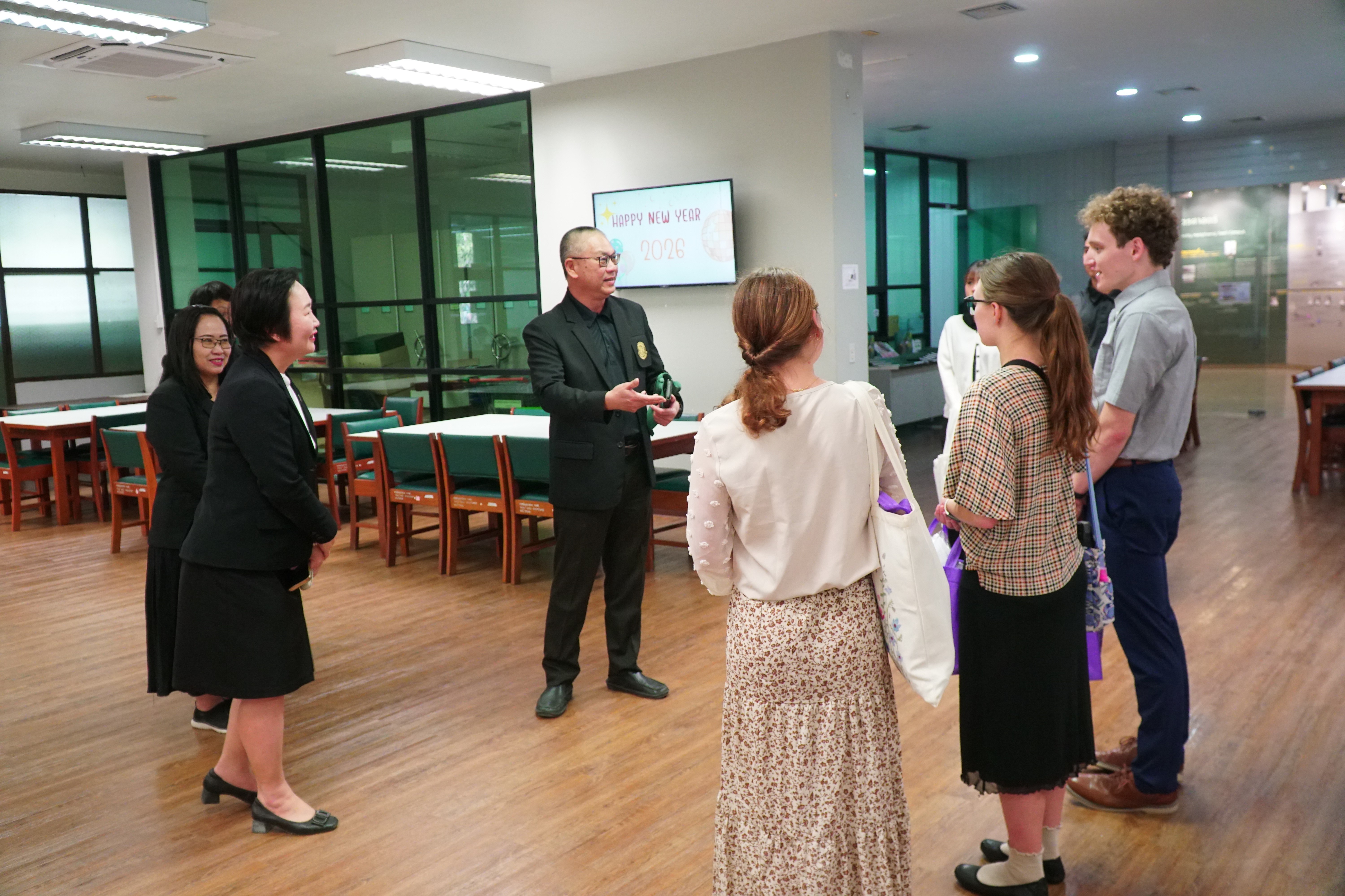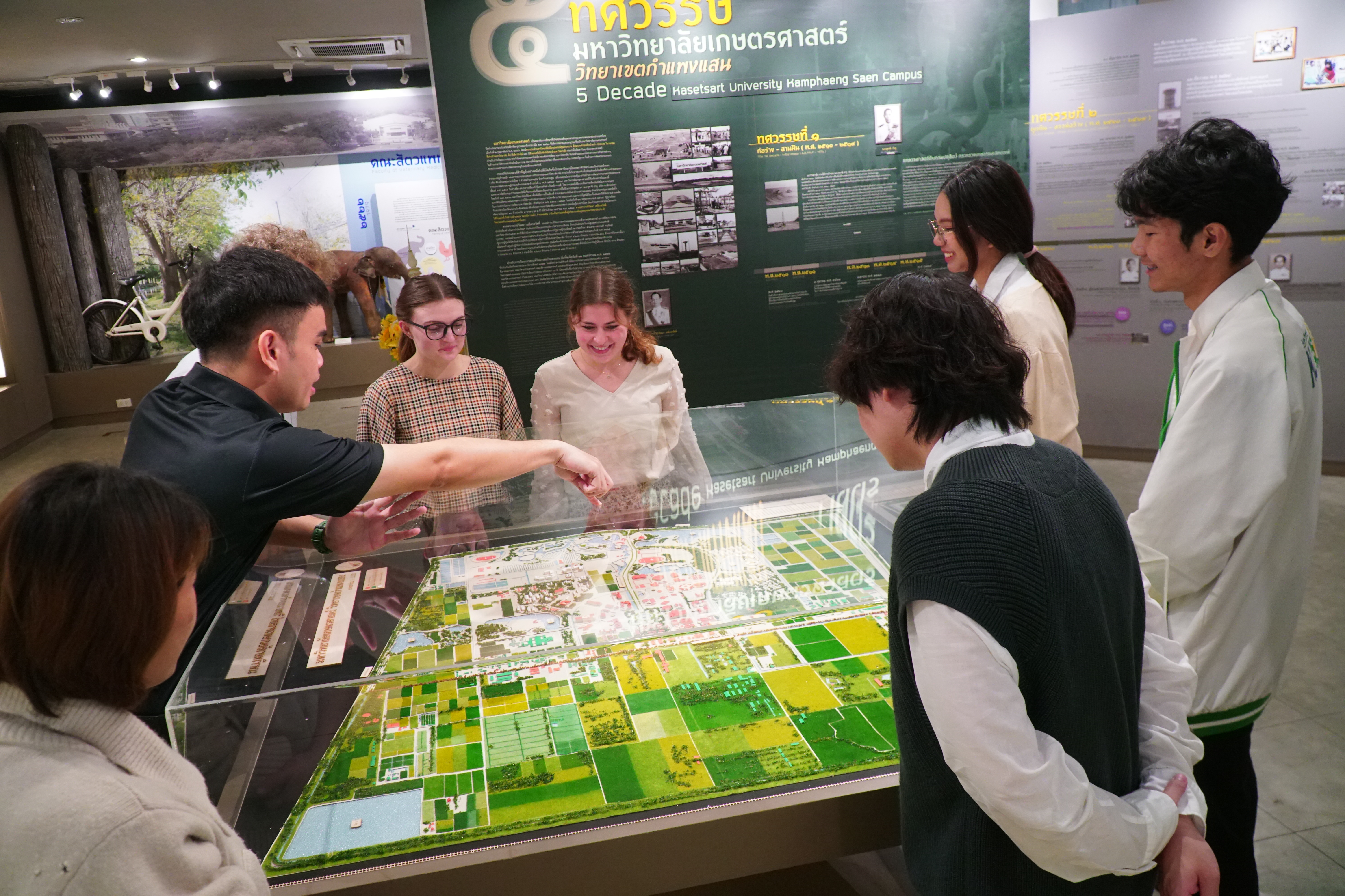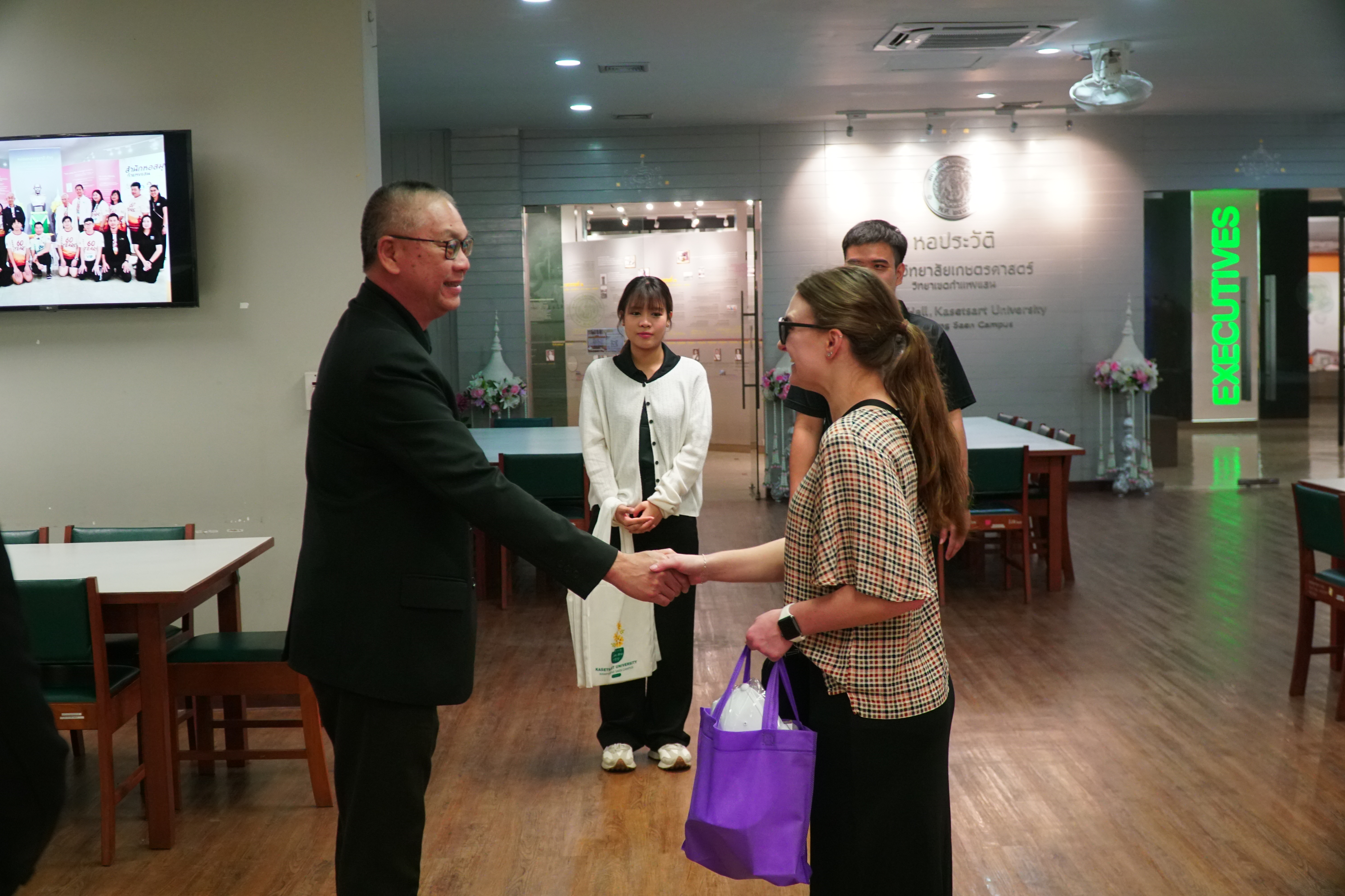 มหาวิทยาลัยเกษตรศาสตร์ วิทยาเขตกำแพงแสน โดย รองศาสตราจารย์ นายสัตวแพทย์ ดร.อนุชัย ภิญโญภูมิมินทร์ รองอธิการบดีวิทยาเขตกำแพงแสน พร้อมด้วยผู้ช่วยศาสตราจารย์ ดร.สุกัญญา รัตนทับทิมทอง ผู้ช่วยอธิการบดีฝ่ายวิจัย บริการวิชาการ และวิเทศสัมพันธ์ วิทยาเขตกำแพงแสน ให้การต้อนรับนิสิตระดับปริญญาตรีจาก University of Wisconsin–Green Bay ประเทศสหรัฐอเมริกา เมื่อวันที่ 12 มกราคม 2569 เนื่องในโอกาสเข้าร่วมโครงการฝึกประสบการณ์วิชาชีพครูสำหรับนิสิตต่างชาติ (The Teaching Internship Program) เพื่อส่งเสริมและสนับสนุนการแลกเปลี่ยนเรียนรู้ร่วมกันทางด้านการศึกษา ตลอดจนเสริมสร้างประสบการณ์ด้านวิชาชีพครู ทั้งนี้โครงการดังกล่าวจัดขึ้นภายใต้ความร่วมมือทางวิชาการ ระหว่างคณะศึกษาศาสตร์และพัฒนศาสตร์ มหาวิทยาลัยเกษตรศาสตร์ วิทยาเขตกำแพงแสน กับ University of Wisconsin–Green Bay
