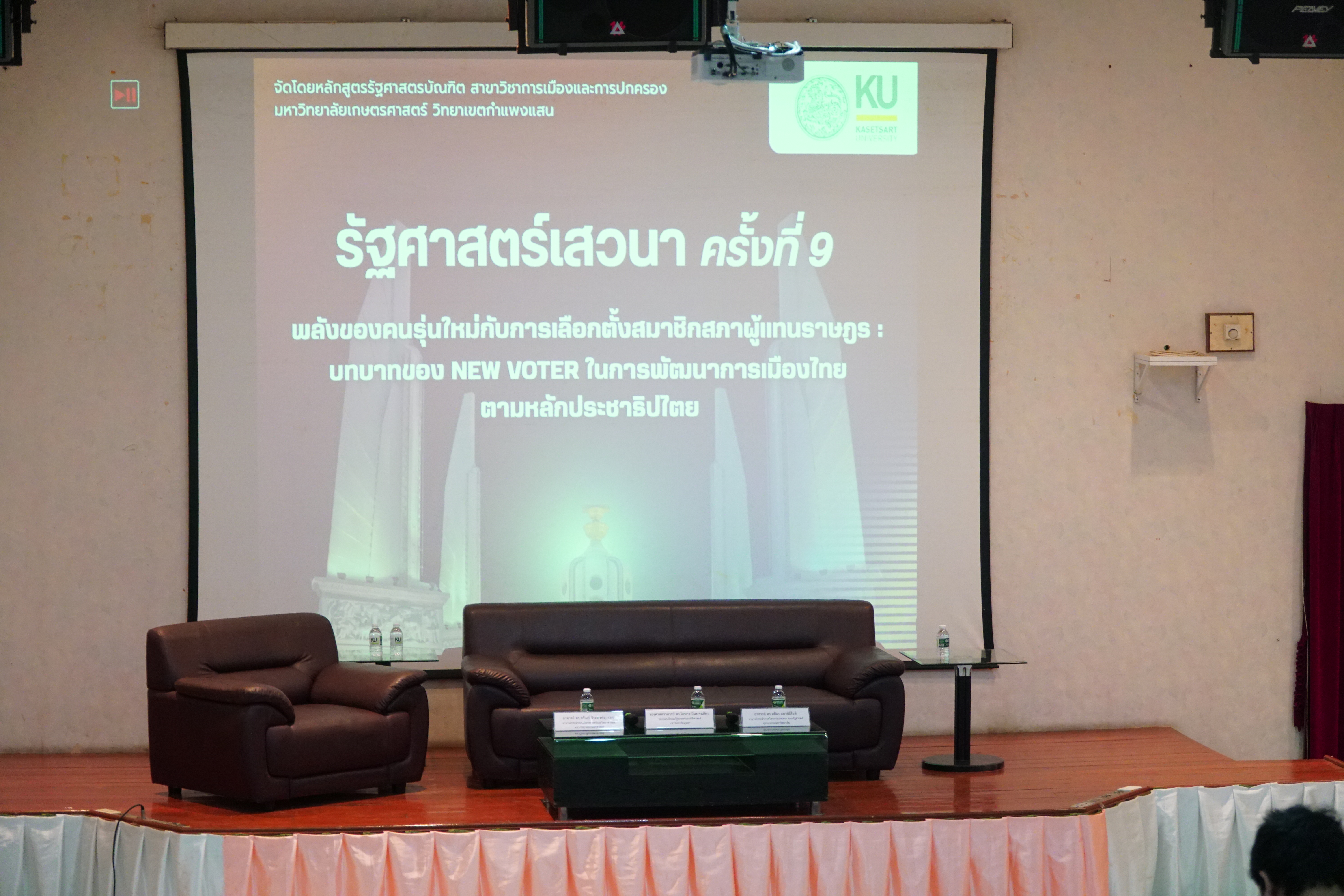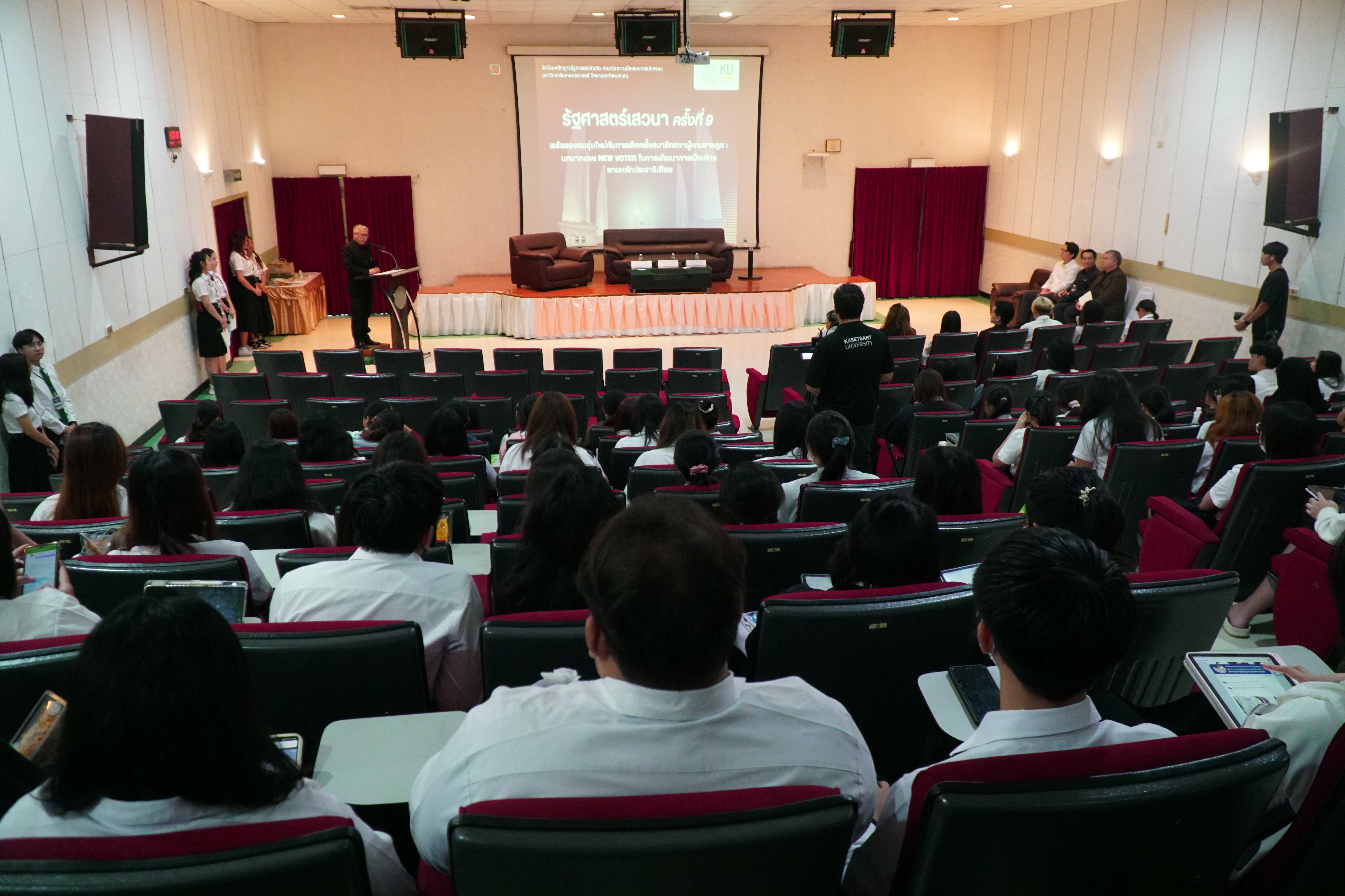 ภาควิชาสังคมศาสตร์ คณะศิลปศาสตร์และวิทยาศาสตร์ มหาวิทยาลัยเกษตรศาสตร์ วิทยาเขตกำแพงแสน จัดโครงการรัฐศาสตร์เสวนา ครั้งที่ 9 หัวข้อ “พลังของคนรุ่นใหม่กับการเลือกตั้งสมากชิกสภาผู้แทนราษฎร : บทบาทของ New Voter ในการพัฒนาการเมืองไทยตามหลักประชาธิปไตย” เมื่อวันที่ 6 กุมภาพันธ์ 2569 ณ ห้อง เธียเตอร์ อาคารศูนย์มหาวิทยาลัย โดยมี ผู้ช่วยศาสตราจารย์ ว่าที่ร้อยตรี ดร. ศิริชัย ศรีพรหม ผู้ช่วยอธิการบดีฝ่ายบริหาร กีฬา และศิลปวัฒนธรรม วิทยาเขตกำแพงแสน เป็นประธานกล่าวเปิดงาน และได้รับเกียรติจาก อาจารย์ ดร.สติธร ธนานิธิโชติ อาจารย์ประจำภาควิชาการปกครอง คณะรัฐศาสตร์ จุฬาลงกรณ์มหาวิทยาลัย พร้อมด้วย รองศาสตราจารย์ ดร.โอฬาร ถิ่นบางเตียว รองคณะบดีคณะรัฐศาสตร์และนิติศาสตร์ มหาวิทยาลัยบูรพา ร่วมเป็นวิทยากรในการเสวนา ทั้งนี้ การจัดเสวนาครั้งนี้มีวัตถุประสงค์เพื่อให้ความรู้และเสริมสร้างความเข้าใจที่ถูกต้องแก่นิสิตเกี่ยวกับความสำคัญของการเลือกตั้ง ตลอดจนส่งเสริมบทบาทของนิสิตและคนรุ่นใหม่ในฐานะพลังสำคัญของประชาธิปไตย ในการมีส่วนร่วมทางการเมืองอย่างสร้างสรรค์