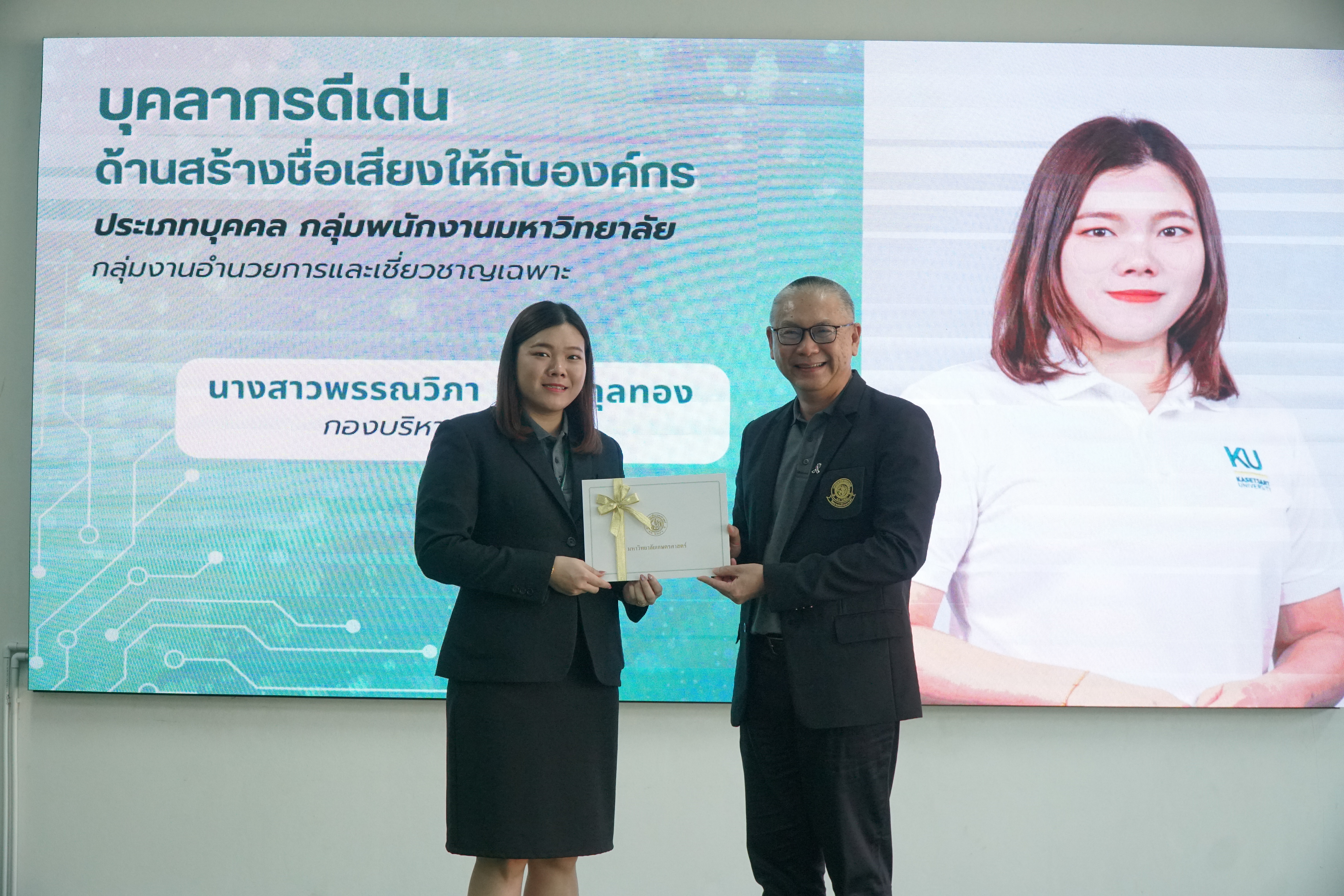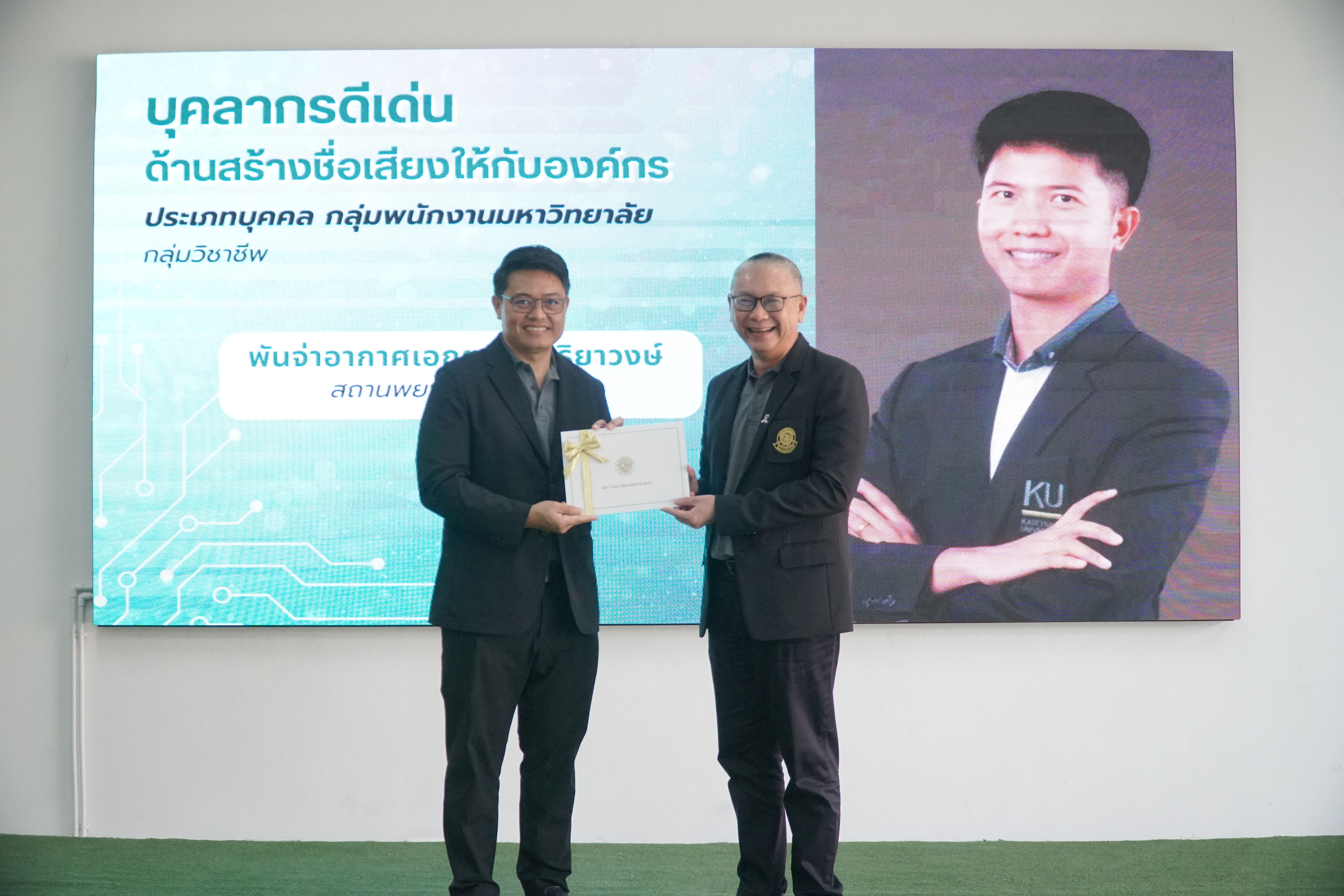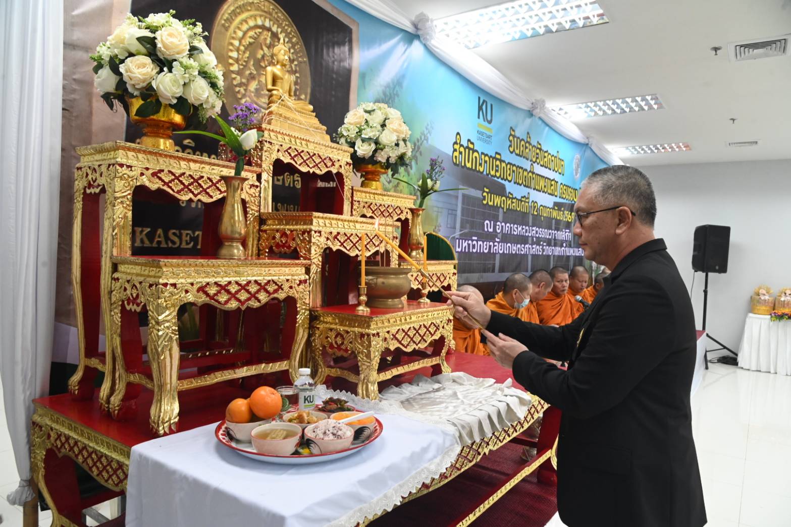 รองศาสตราจารย์ นายสัตวแพทย์ ดร.อนุชัย ภิญโญภูมิมินทร์ รองอธิการบดี วิทยาเขตกำแพงแสน พร้อมด้วยคณะผู้บริหาร ร่วมแสดงความยินดีเนื่องในโอกาส วันคล้ายวันสถาปนา สำนักงานวิทยาเขตกำแพงแสน ครบรอบ 24 ปี และมอบใบประกาศเกียรติคุณแด่บุคลากรดีเด่น ประจำปี 2569 เมื่อวันพฤหัสบดีที่ 12 กุมภาพันธ์ 2569 โดยมี นายอุกฤษฏ์ มนูจันทรัถ ผู้อำนวยการสำนักงานวิทยาเขตกำแพงแสน และคณะผู้บริหารสำนักงานวิทยาเขตกำแพงแสน ให้การต้อนรับ กิจกรรมประกอบไปด้วย พระสงฆ์เจริญพระพุทธมนต์ ถวายภัตตาหารเพลแด่พระสงฆ์ จำนวน 9 รูป พิธีมอบใบประกาศเกียรติคุณแด่บุคลากรดีเด่น สำนักงานวิทยาเขตกำแพงแสน ประจำปี 2569 และรับประทานอาหารกลางวันร่วมกัน ณ อาคารหลวงสุวรรณวาจกกสิกิจ มหาวิทยาลัยเกษตรศาสตร์ วิทยาเขตกำแพงแสน