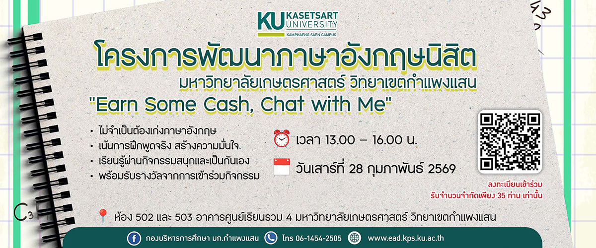 โครงการพัฒนาภาษาอังกฤษนิสิต “Earn Some Cash, Chat with Me”