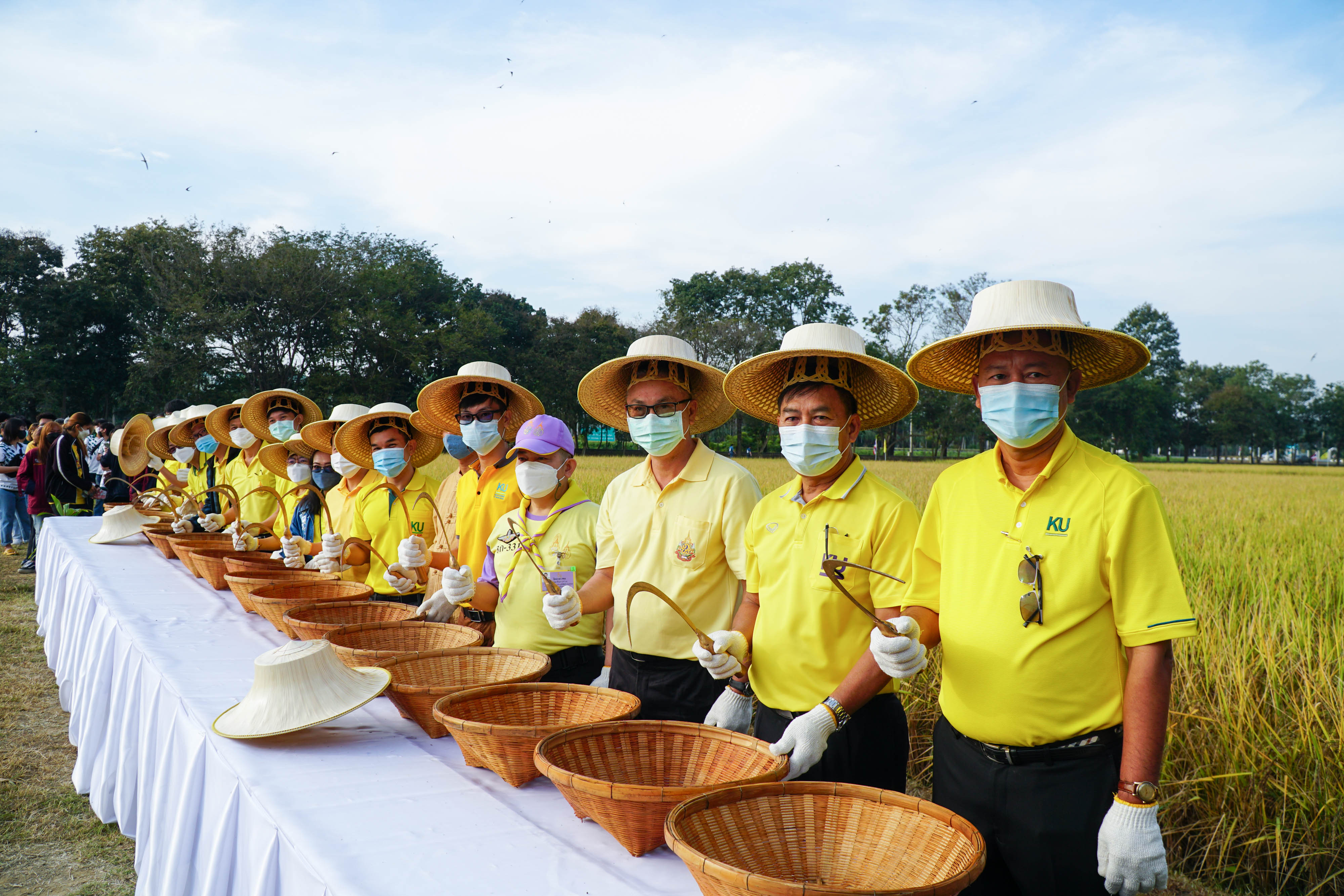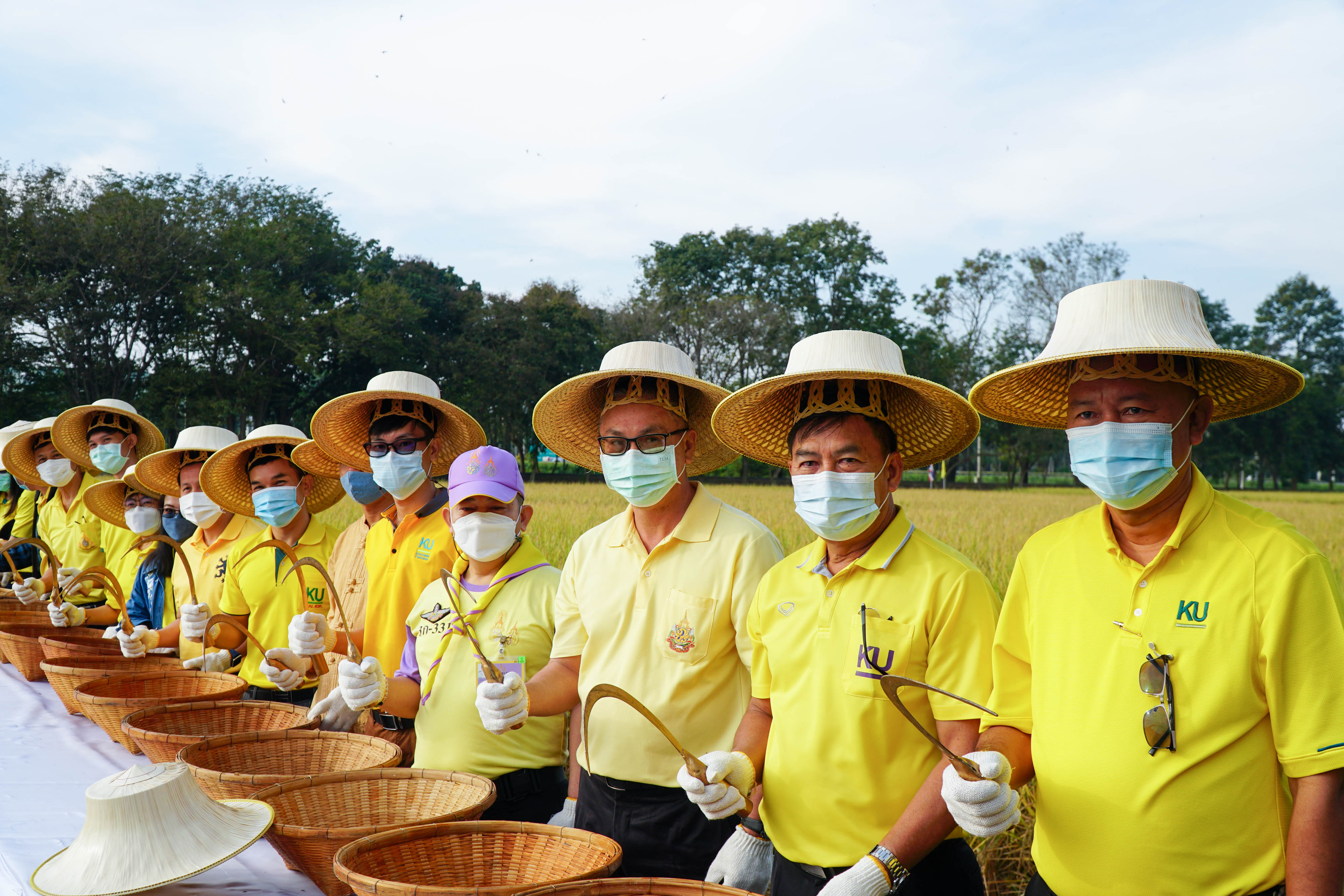 วันอาทิตย์ที่ 5 ธันวาคม 2564 มหาวิทยาลัยเกษตรศาสตร์ วิทยาเขตกำแพงแสน ได้จัดกิจกรรมเกี่ยวข้าววันพ่อ ประจำปี 2564 โดยมีวัตถุประสงค์เพื่อเป็นการแสดงออกถึงความจงรักภักดีถึงพระมหากรุณาธิคุณ ของพระองค์ท่าน โครงการปลูกข้าววันแม่ ได้จัดมาแล้ว เมื่อวันพุธที่ 11 สิงหาคม 2564 เพื่อถวายราชสดุดีและถวายพระพรชัยมงคล สมเด็จพระนางเจ้าสิริกิติ์ พระบรมราชินีนาถ พระบรมราชชนนีพันปีหลวง และกิจกรรมสืบสานประเพณี “ปลูกข้าววันแม่…เก็บเกี่ยววันพ่อ” (ข้าวไรซ์เบอร์รี่ Riceberry) ประจำปี 2564 โดยกำหนดเก็บเกี่ยวในวันพ่อแห่งชาติ ซึ่งเป็นวันคล้ายวันเฉลิมพระชนมพรรษาพระบาทสมเด็จพระบรมชนกาธิเบศร มหาภูมิพลอดุลยเดชมหาราช บรมนาถบพิตร และเป็นวันพ่อแห่งชาติรวมถึงเป็นวันชาติของประเทศไทย ในวันที่ 5 ธันวาคม 2564 โดยมี รองศาสตราจารย์ นายสัตวแพทย์ ดร.อนุชัย ภิญโญภูมิมินทร์ รองอธิการบดีวิทยาเขตกำแพงแสน เป็นประธานเปิดกิจกรรม และนำคณะผู้บริหาร อาจารย์ บุคลากร และนิสิต ขับร้องเพลงชาติไทย เบื้องหน้าพระบรมฉายาลักษณ์ พระบาทสมเด็จพระบรมชนกาธิเบศร มหาภูมิพลอดุลยเดชมหาราช บรมนาถบพิตร ถวายราชสักการะเบื้องหน้าพระบรมฉายาลักษณ์ โดยมี รองศาสตราจารย์ ดร.ต่อศักดิ์ แก้วจรัสวิไล ผู้ช่วยอธิการบดีฝ่ายกิจการนิสิต กีฬา และทำนุบำรุงศิลปวัฒนธรรม วิทยาเขตกำแพงแสน กล่าวรายงาน จากนั้นร่วมลงแปลงนาเกี่ยวข้าวร่วมกัน ณ ทุ่งนาไพร (หลังสถานีบริการน้ำมันเชื้อเพลิง มก.กพส.) และกิจกรรมในช่วงเย็นได้จัดแสดง “ดนตรี อว. เทิดพระเกียรติ 5 ธันวาคม 2564 ชมการแสดงดนตรีเพลงพระราชนิพนธ์เทิดพระเกียรติ โดย นิสิตปัจจุบัน นิสิตเก่า บุคลากร และศิลปินรับเชิญ อาทิ การแสดงดนตรีไทย การบรรเลงกีตาร์คลาสสิก การแสดงทรีโอ การแสดงขับร้องเพลงพระราชนิพนธ์ และการแสดงดนตรี Big Band ออนไลน์ผ่านทางช่องยูทูป Pirun Channel และเพจเฟสบุ๊คมหาวิทยาลัยเกษตรศาสตร์ วิทยาเขตกำแพงแสน ณ บริเวณสระพระพิรุณ
