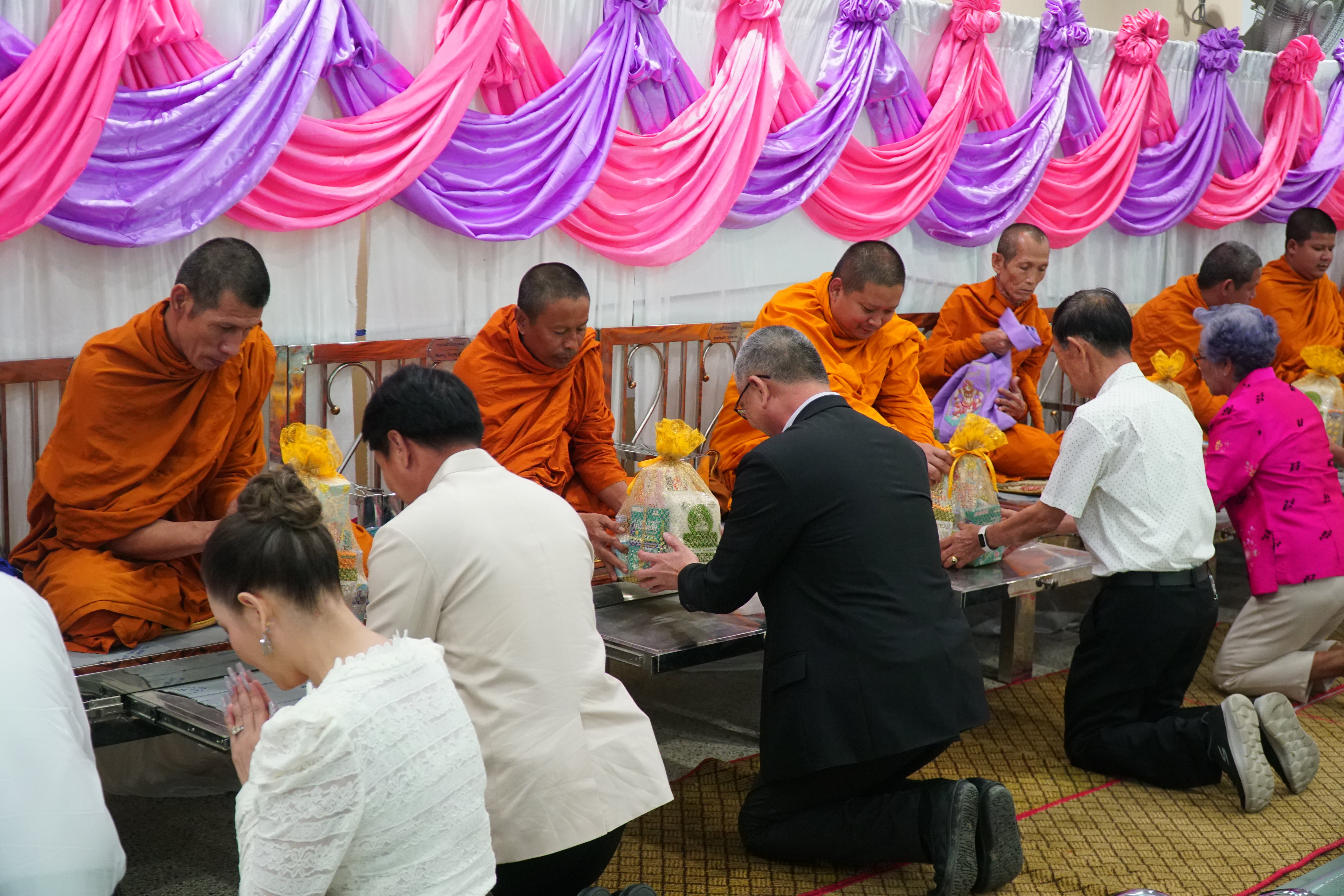 มหาวิทยาลัยเกษตรศาสตร์ วิทยาเขตกำแพงแสน นำโดย รองศาสตราจารย์ นายสัตวแพทย์ ดร.อนุชัย ภิญโญภูมิมินทร์ รองอธิการบดีวิทยาเขตกําแพงแสน พร้อมด้วย นายธนกฤต มากงลาด ผู้อำนวยการสถานพยาบาลมหาวิทยาลัยเกษตรศาสตร์ วิทยาเขตกำแพงแสน และบุคลากร ร่วมแสดงความยินดี กับ นายแพทย์ณัฏฐ์คเณศ คงคาเพชร ผู้อำนวยการโรงพยาบาลกำแพงแสน เนื่องในโอกาสวันสถาปนา โรงพยาบาลกำแพงแสน ครบรอบ 38 ปี เมื่อวันพฤหัสที่ 25 กันยายน 2568 ณ บริเวณอาคารผู้ป่วยนอก โรงพยาบาลกำแพงแสน โดยร่วมพิธีเจริญพระพุทธมนต์ ถวายภัตตาหารเพลแด่พระสงฆ์ จำนวน 9 รูป พร้อมทั้งมอบช่อดอกไม้แสดงความยินดี