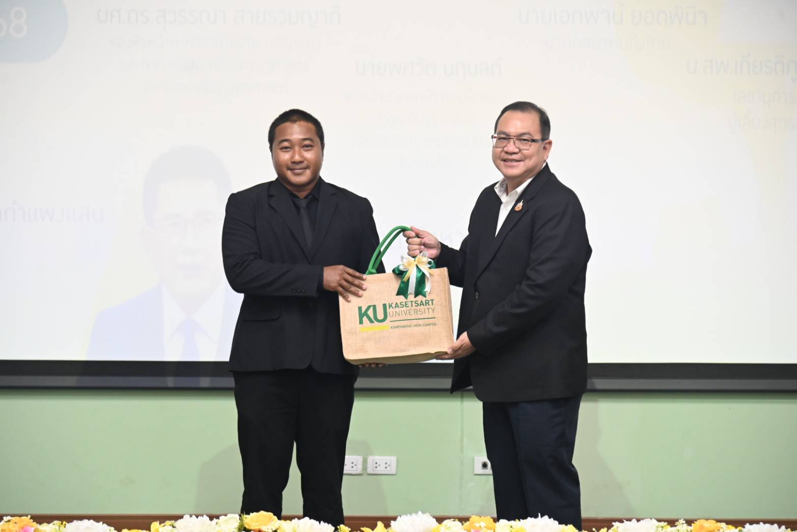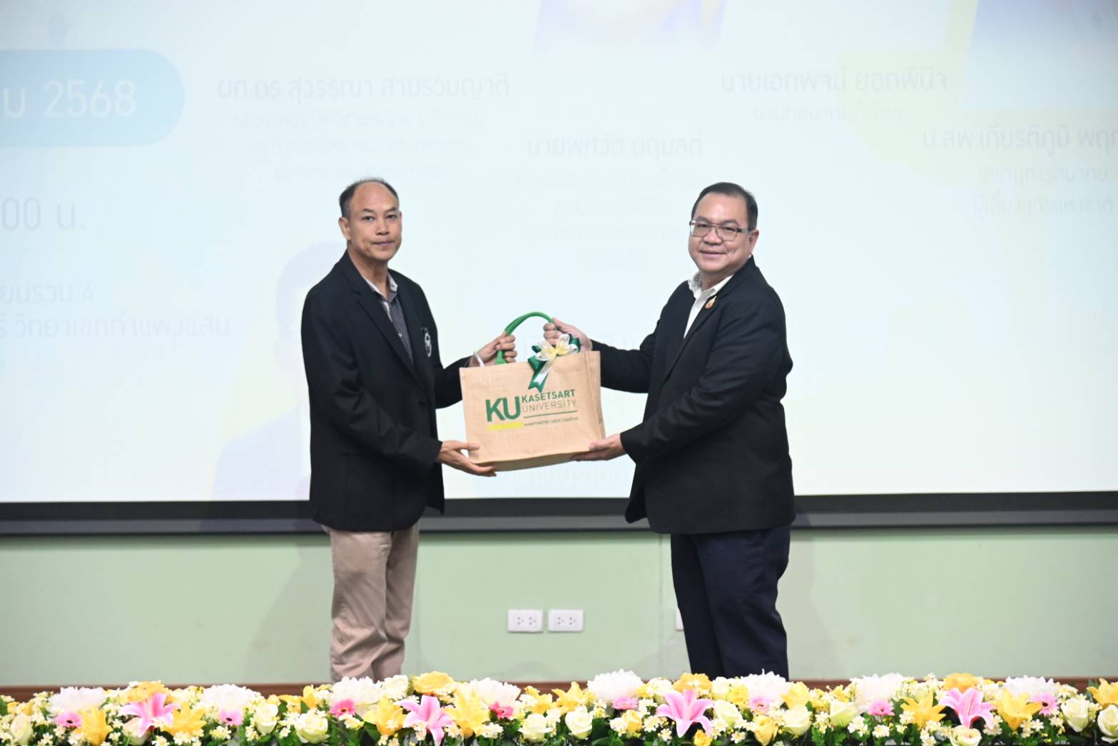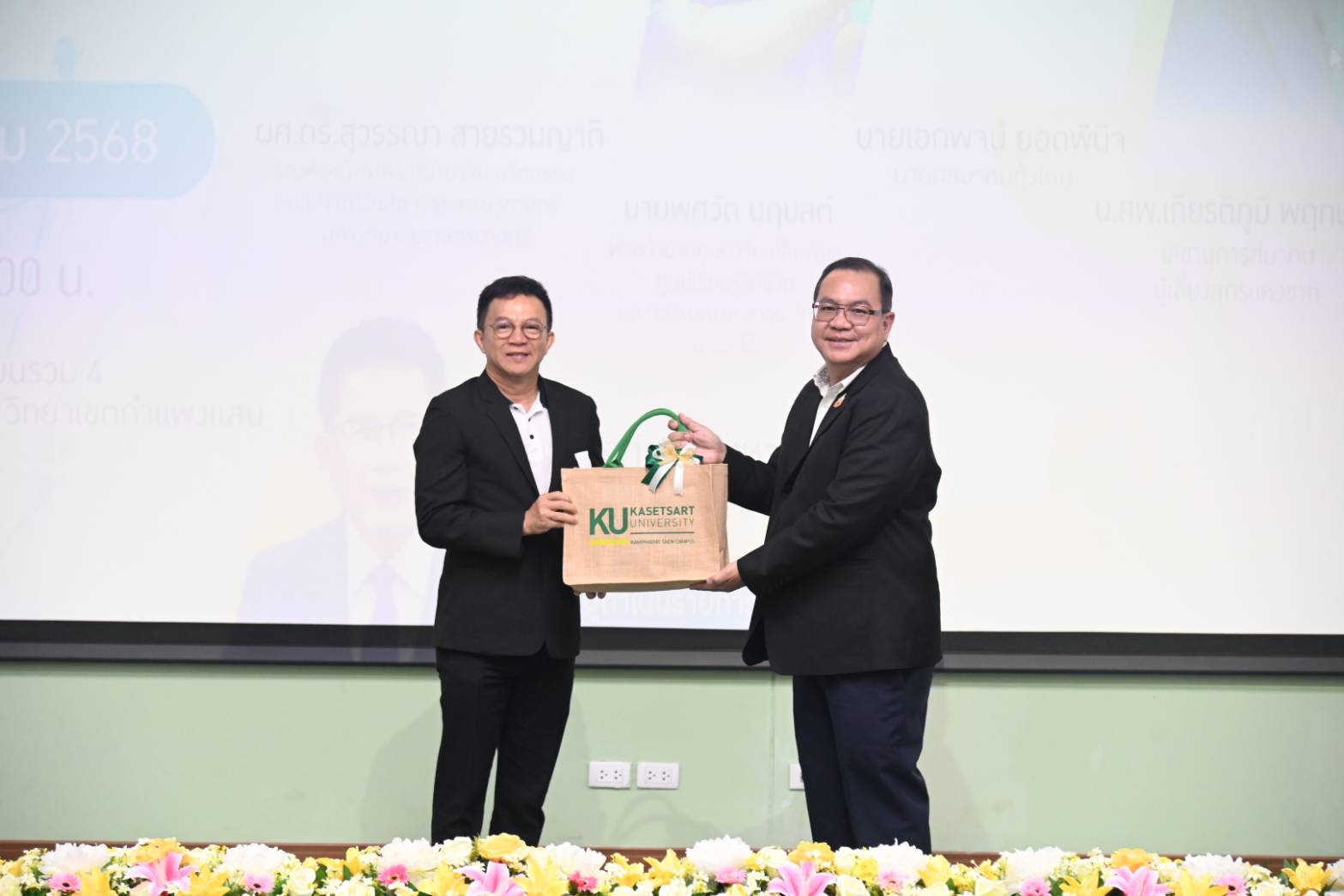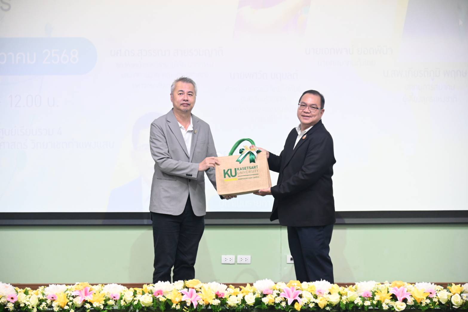 ผู้ช่วยศาสตราจารย์ ดร. กฤษณ์ วันอินทร์ รองอธิการบดีฝ่ายนวัตกรรมและพันธกิจเพื่อสังคม มหาวิทยาลัยเกษตรศาสตร์ เป็นประธานเปิดโครงการจัดสัมมนาและประชุมวิชาการระดับชาติ ครั้งที่ 22 และมอบรางวัลให้แก่ผู้ชนะการประกวดนวัตกรรม งานเกษตรกำแพงแสน ประจำปี 2568 พร้อมร่วมรับชมการเสวนาในหัวข้อ "สงครามภาษี :เกษตรกรไทยในยุคภูมิรัฐศาสตร์ใหม่จะก้าวอย่างไร เมื่อวันพุธที่ 3 ธันวาคม 2568 ณ ห้อง 101 อาคารศูนย์เรียนรวม 4 มหาวิทยาลัยเกษตรศาสตร์ วิทยาเขตกำแพงแสน