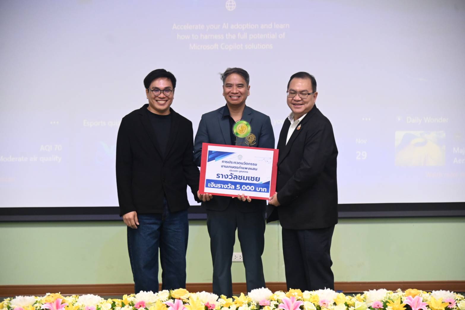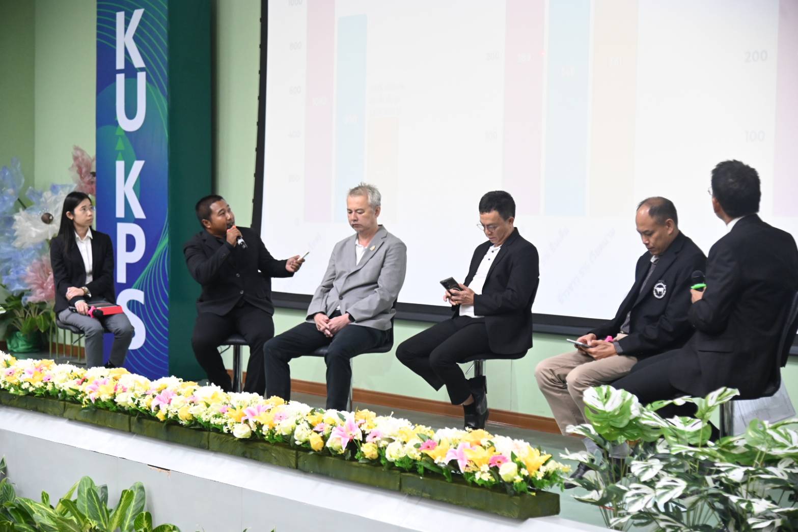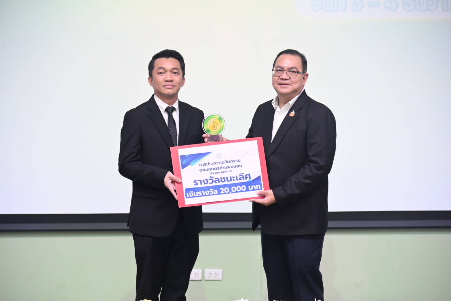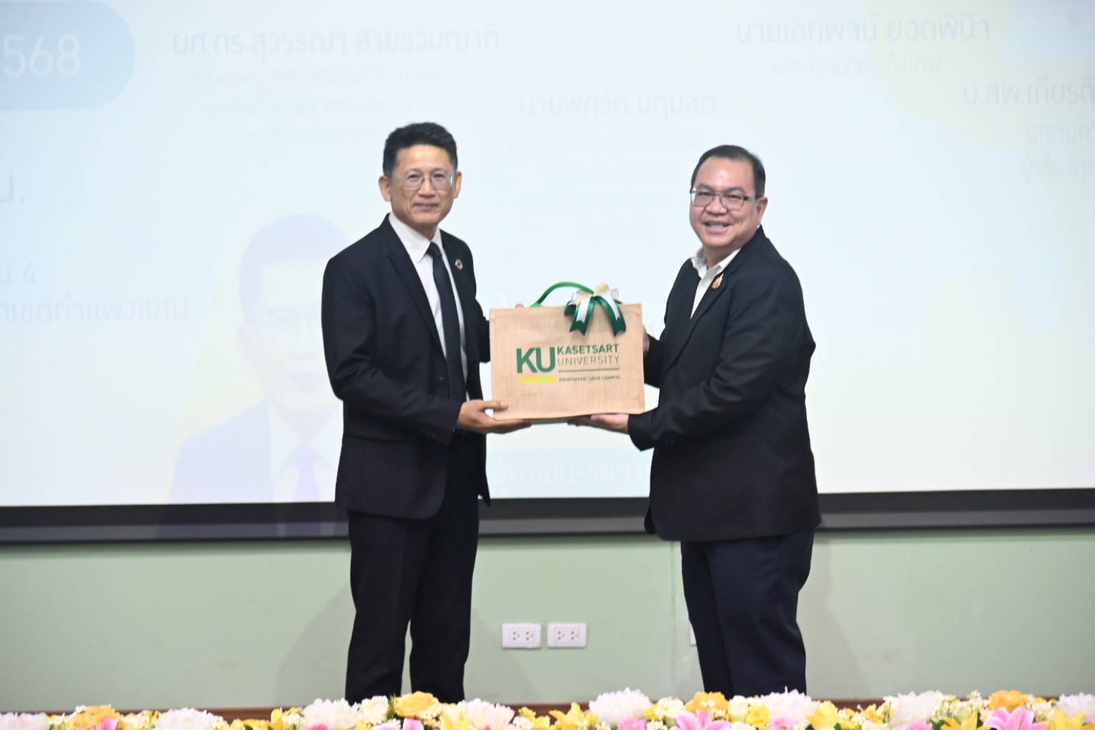 ผู้ช่วยศาสตราจารย์ ดร. กฤษณ์ วันอินทร์ รองอธิการบดีฝ่ายนวัตกรรมและพันธกิจเพื่อสังคม มหาวิทยาลัยเกษตรศาสตร์ เป็นประธานเปิดโครงการจัดสัมมนาและประชุมวิชาการระดับชาติ ครั้งที่ 22 และมอบรางวัลให้แก่ผู้ชนะการประกวดนวัตกรรม งานเกษตรกำแพงแสน ประจำปี 2568 พร้อมร่วมรับชมการเสวนาในหัวข้อ "สงครามภาษี :เกษตรกรไทยในยุคภูมิรัฐศาสตร์ใหม่จะก้าวอย่างไร เมื่อวันพุธที่ 3 ธันวาคม 2568 ณ ห้อง 101 อาคารศูนย์เรียนรวม 4 มหาวิทยาลัยเกษตรศาสตร์ วิทยาเขตกำแพงแสน