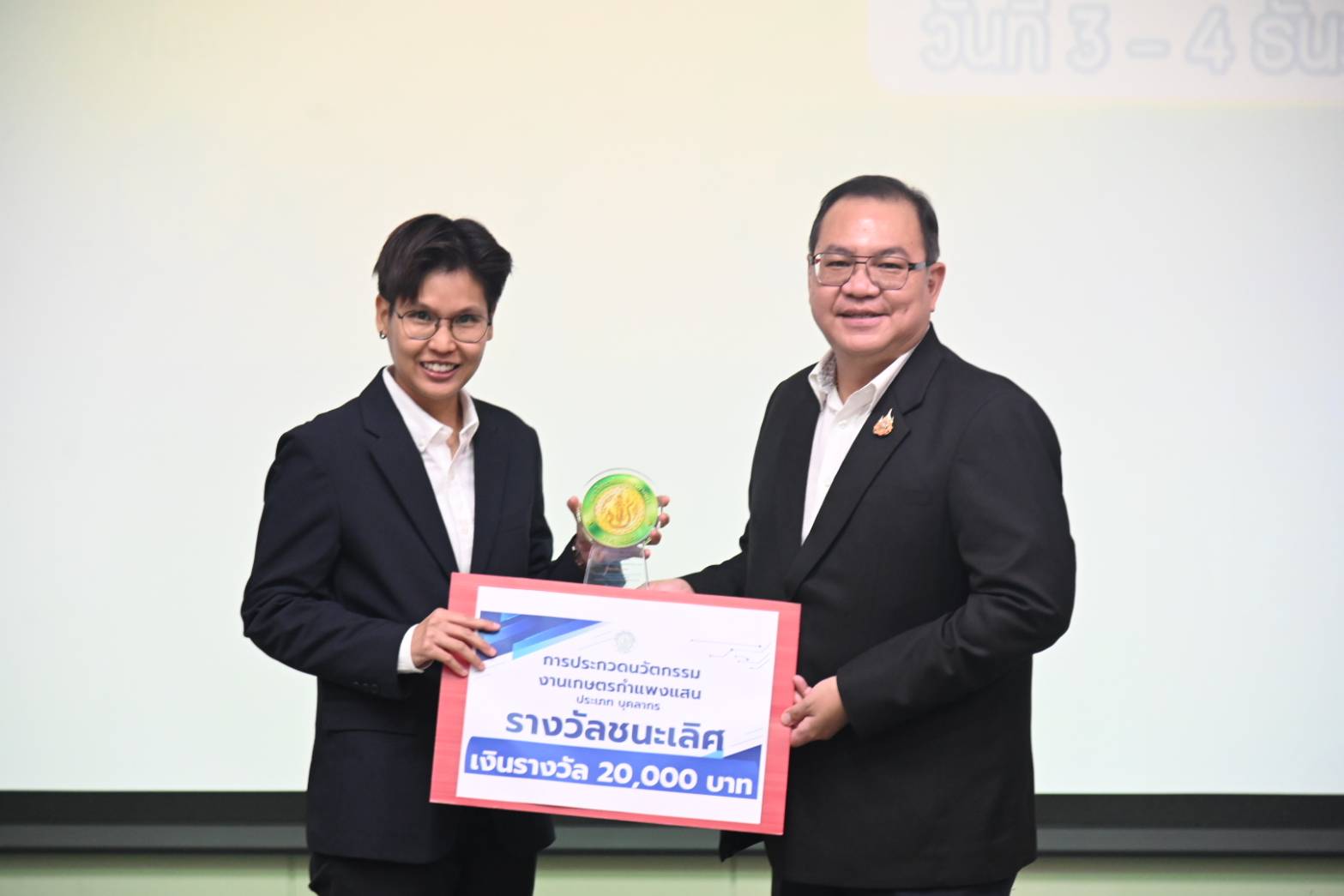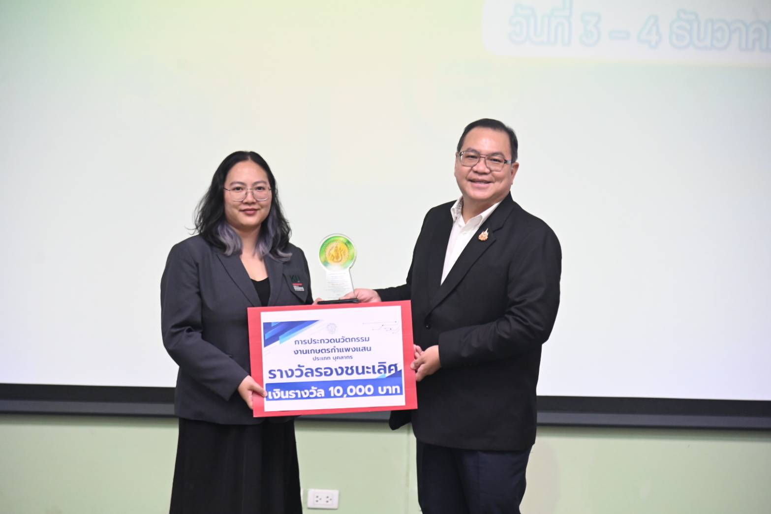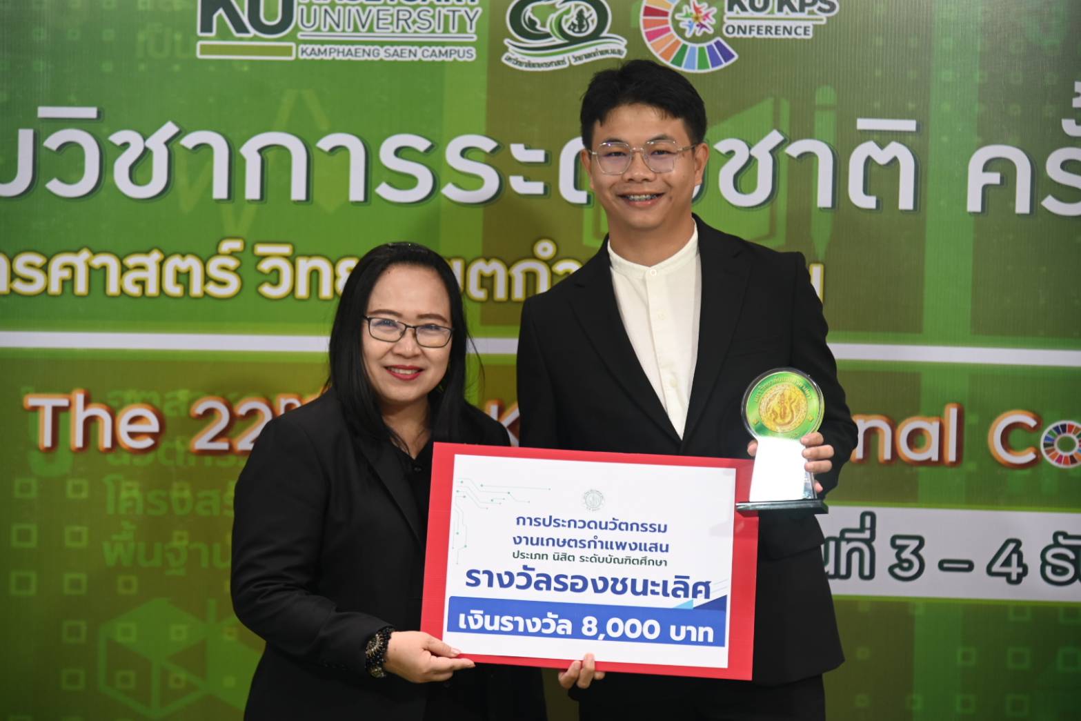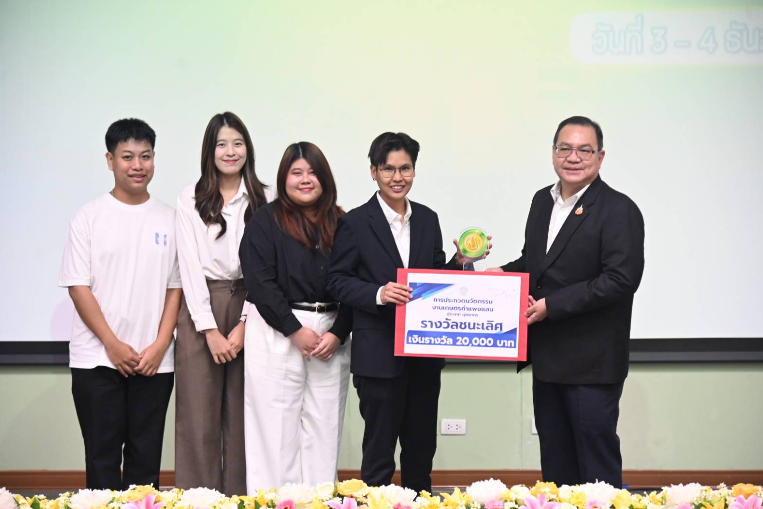 ผู้ช่วยศาสตราจารย์ ดร. กฤษณ์ วันอินทร์ รองอธิการบดีฝ่ายนวัตกรรมและพันธกิจเพื่อสังคม มหาวิทยาลัยเกษตรศาสตร์ เป็นประธานเปิดโครงการจัดสัมมนาและประชุมวิชาการระดับชาติ ครั้งที่ 22 และมอบรางวัลให้แก่ผู้ชนะการประกวดนวัตกรรม งานเกษตรกำแพงแสน ประจำปี 2568 พร้อมร่วมรับชมการเสวนาในหัวข้อ "สงครามภาษี :เกษตรกรไทยในยุคภูมิรัฐศาสตร์ใหม่จะก้าวอย่างไร เมื่อวันพุธที่ 3 ธันวาคม 2568 ณ ห้อง 101 อาคารศูนย์เรียนรวม 4 มหาวิทยาลัยเกษตรศาสตร์ วิทยาเขตกำแพงแสน