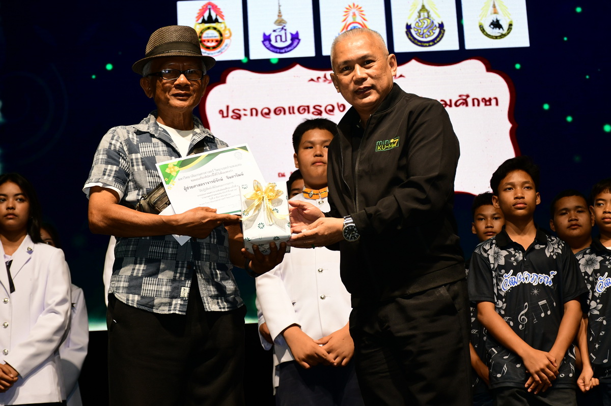 มหาวิทยาลัยเกษตรศาสตร์ วิทยาเขตกำแพงแสน จัดการประกวดแตรวงระดับมัธยมศึกษา ครั้งที่ 3 "งานเกษตรกำแพงแสน ครั้งที่ 28 ประจำปี 2568" ณ เวทีกลาง บริเวณด้านหน้าอาคารศูนย์เรียนรวม 1 มหาวิทยาลัยเกษตรศาสตร์ วิทยาเขตกำแพงแสน โดยได้รับเกียรติจาก ผู้ช่วยศาสตราจารย์ ว่าที่ร้อยตรี ดร. ศิริชัย ศรีพรหม ผู้ช่วยอธิการบดีฝ่ายบริหาร กีฬา และศิลปวัฒนธรรม วิทยาเขตกำแพงแสน มอบรางวัลแก่ แตรวงราชพฤกษ์วาทิตจากโรงเรียนกาญจนาภิเษกวิทยาลัย สุพรรณบุรี ได้รับรางวัลชนะเลิศ แตรวงโรงเรียนสิรินธรราชวิทยาลัย อ.เมือง จ.นครปฐม ได้รับรางวัลรองชนะเลิศอันดับ 1 แตรวงวัฒนาภรณ์ โรงเรียนวัดดอนมะโนรา (รังสิยานุกูล) ได้รับรางวัลรองชนะเลิศอันดับ 2 และรางวัลชมเชย 2 รางวัลได้แก่ แตรวงชงโคแบนด์ โรงเรียนท่าม่วงราษฎร์บำรุง อ.ท่าม่วง จ.กาญจนบุรี และแตรวงโรงเรียนบรรหารแจ่มใสวิทยา 1 อ.ดอนเจดีย์ จ.สุพรรณบุรี