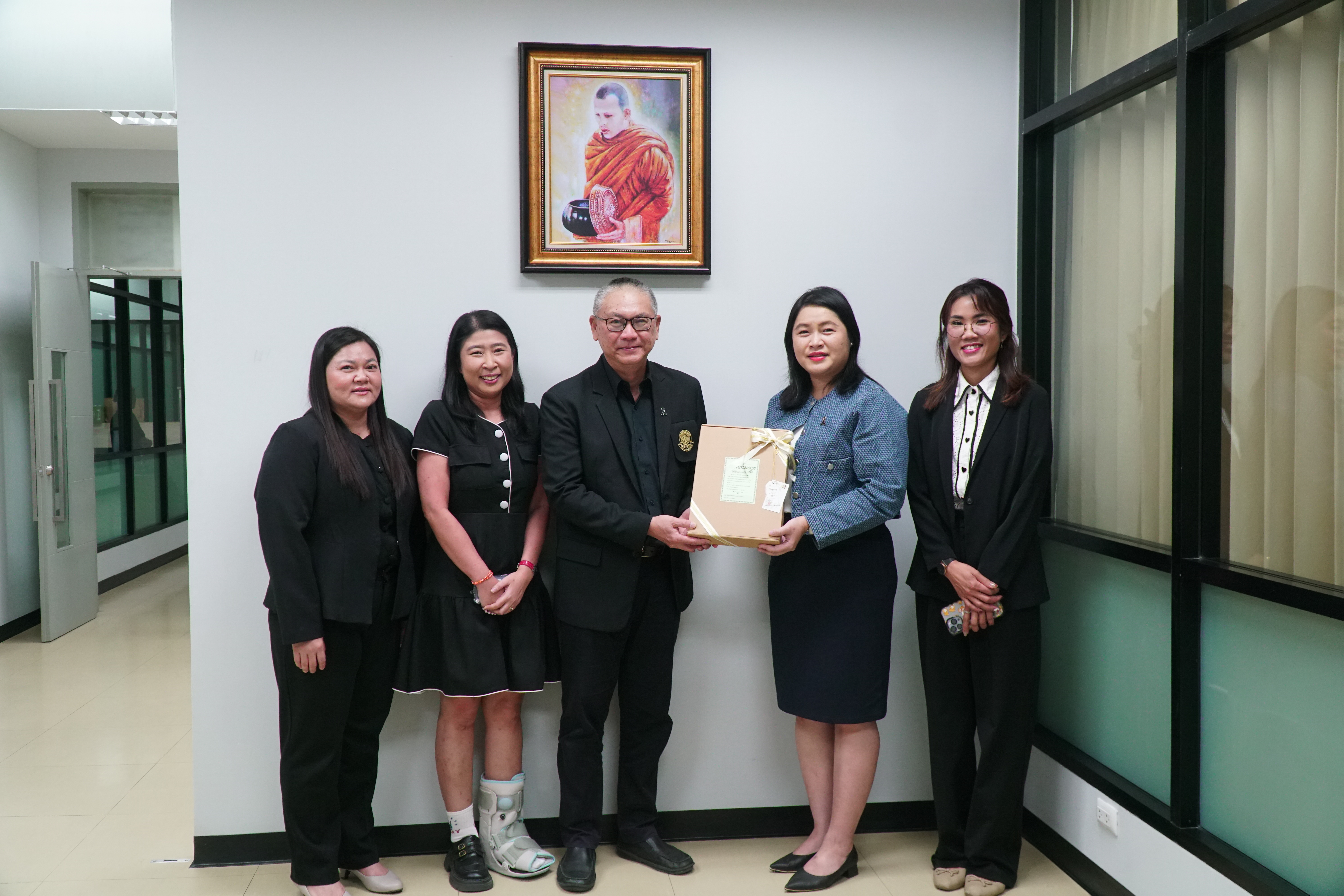 สำนักส่งเสริมและฝึกอบรม กำแพงแสน นำโดย ดร.กันยารัตน์ เชี่ยวเวช ผู้อำนวยการสำนักส่งเสริมและฝึกอบรม กำแพงแสน พร้อมคณะ เข้าพบ รองศาสตราจารย์ นายสัตวแพทย์ ดร.อนุชัย ภิญโญภูมินทร์ รองอธิการบดีวิทยาเขตกำแพงแสน เมื่อวันที่ 26 ธันวาคม 2568 เพื่อมอบของขวัญและสวัสดีปีใหม่เนื่องในโอกาสวันขึ้นปีใหม่ พุทธศักราช 2569