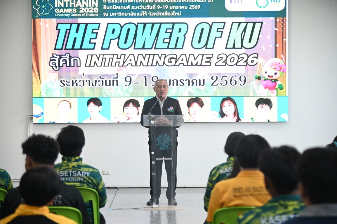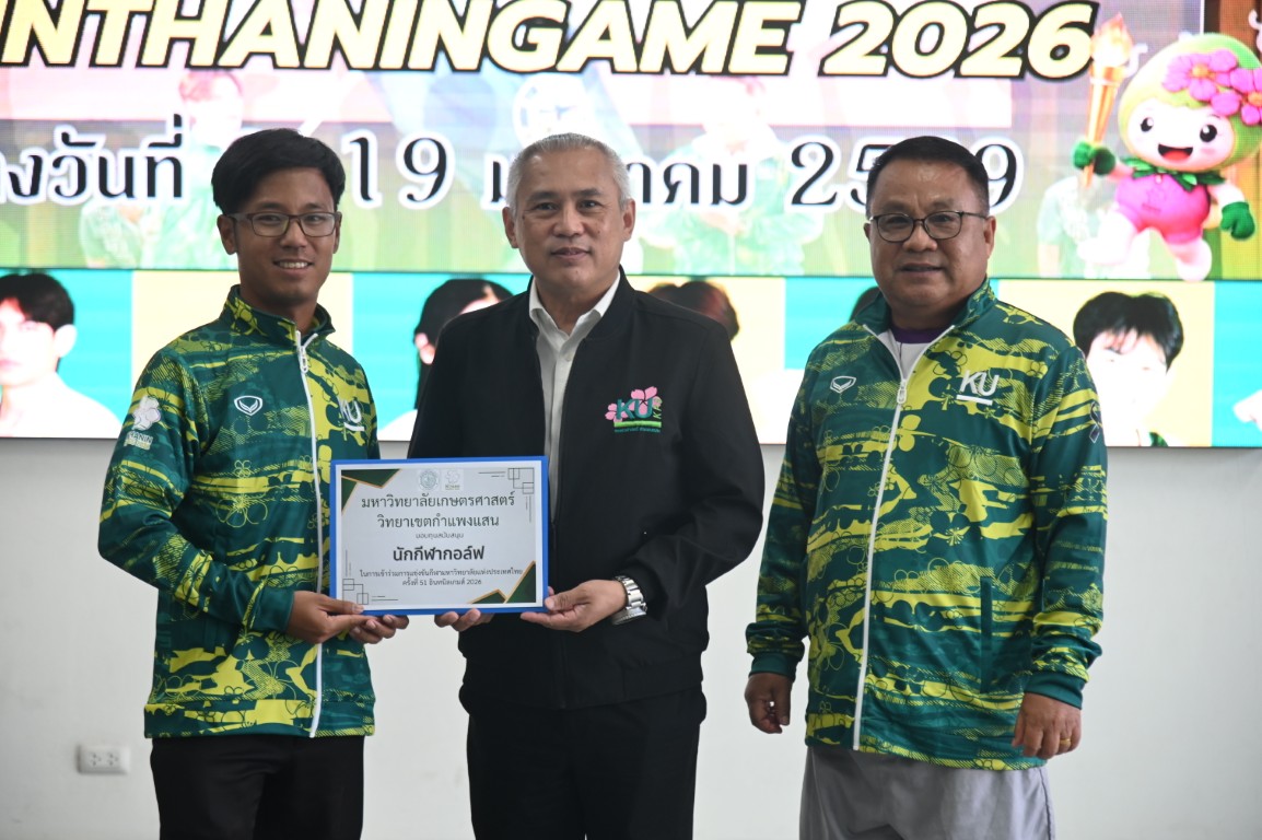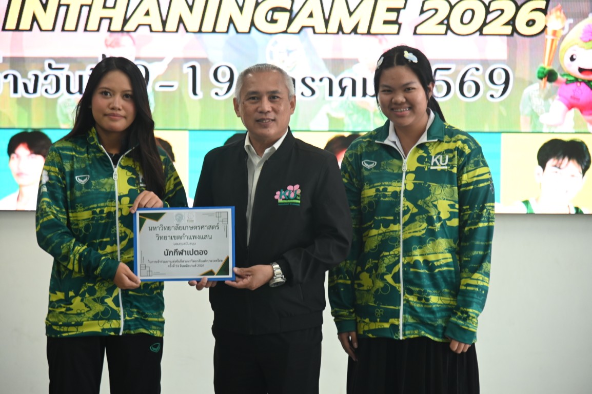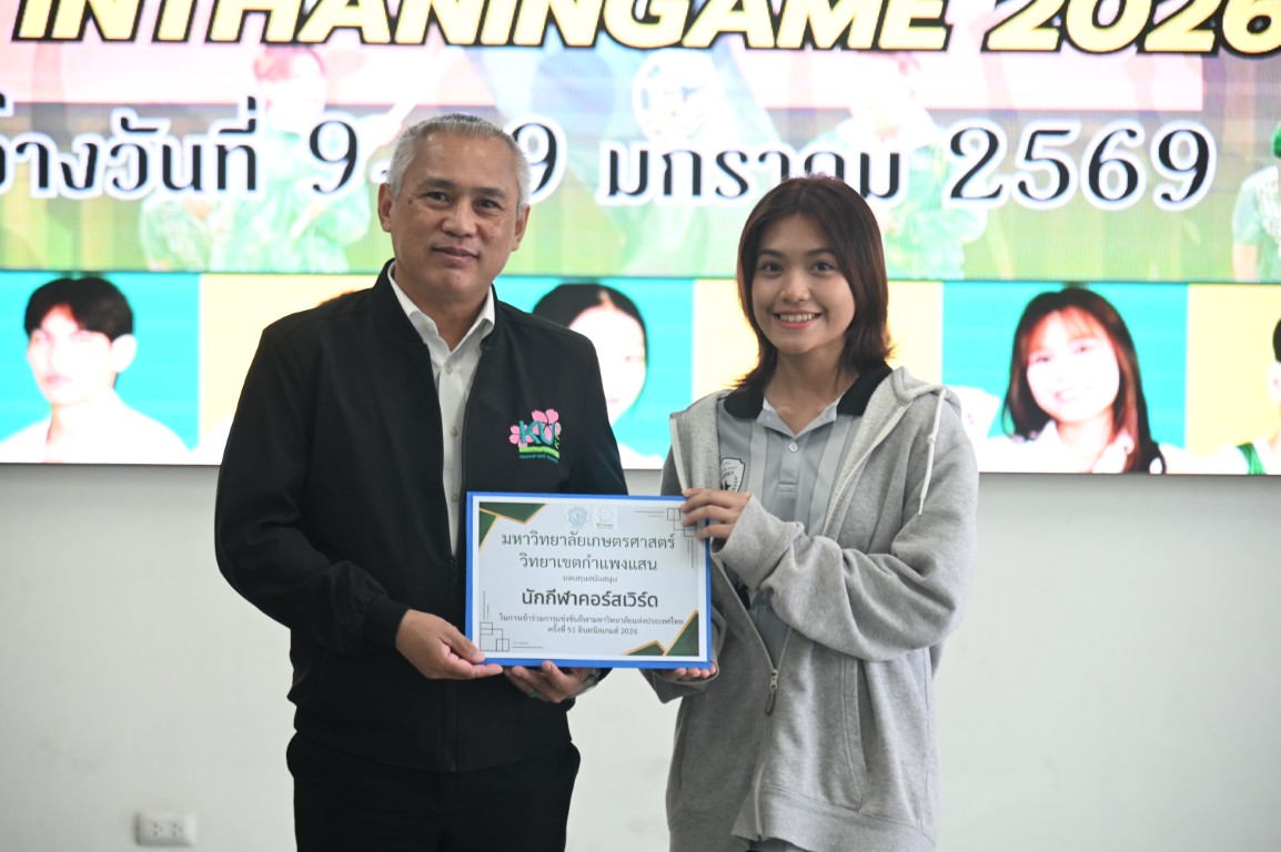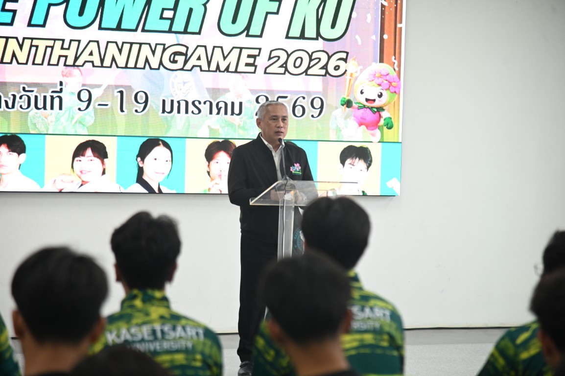 รองศาสตราจารย์ นายสัตวแพทย์ ดร.อนุชัย ภิญโญภูมิมินทร์ รองอธิการบดีวิทยาเขตกำแพงแสน มอบหมายให้ ผู้ช่วยศาสตราจารย์ ว่าที่ร้อยตรี ดร. ศิริชัย ศรีพรหม ผู้ช่วยอธิการบดีฝ่ายบริหาร กีฬา และศิลปวัฒนธรรม วิทยาเขตกำแพงแสน กล่าวให้โอวาทและให้กำลังใจนักกีฬาก่อนสู้ศึก "การแข่งขันกีฬามหาวิทยาลัยแห่งประเทศไทย ครั้งที่ 51 อินทนิลเกมส์" ระหว่างวันที่ 9 -19 มกราคม 2569 ณ มหาวิทยาลัยแม่โจ้ จังหวัดเชียงใหม่ พร้อมมอบทุนสนับสนุนให้แก่ทีมนักกีฬาที่เข้าร่วมแข่งขันในครั้งนี้ ซึ่งมีนิสิตของมหาวิทยาลัยเกษตรศาสตร์ วิทยาเขตกำแพงแสน เข้าร่วมแข่งกันใน 26 ชนิดกีฬา จำนวนทั้งสิ้น 226 คน