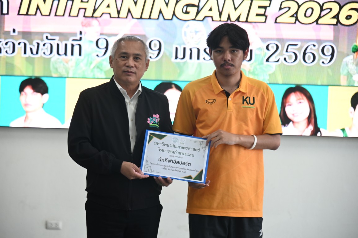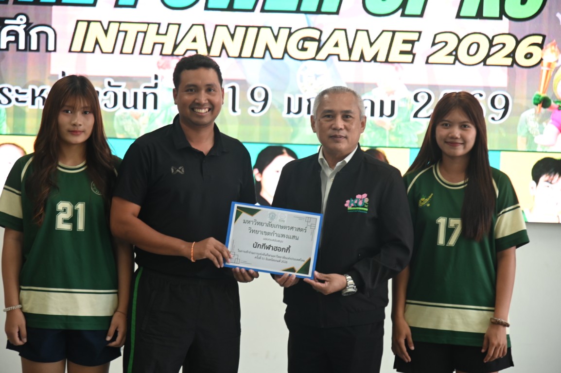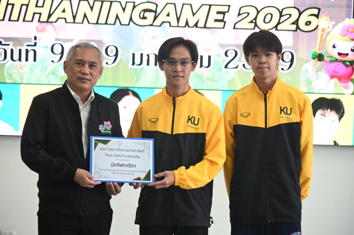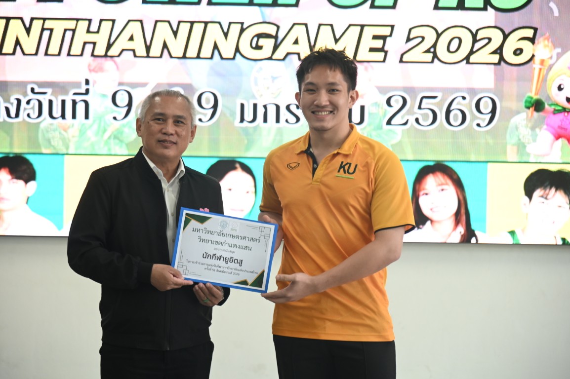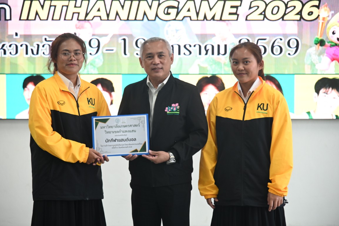 รองศาสตราจารย์ นายสัตวแพทย์ ดร.อนุชัย ภิญโญภูมิมินทร์ รองอธิการบดีวิทยาเขตกำแพงแสน มอบหมายให้ ผู้ช่วยศาสตราจารย์ ว่าที่ร้อยตรี ดร. ศิริชัย ศรีพรหม ผู้ช่วยอธิการบดีฝ่ายบริหาร กีฬา และศิลปวัฒนธรรม วิทยาเขตกำแพงแสน กล่าวให้โอวาทและให้กำลังใจนักกีฬาก่อนสู้ศึก "การแข่งขันกีฬามหาวิทยาลัยแห่งประเทศไทย ครั้งที่ 51 อินทนิลเกมส์" ระหว่างวันที่ 9 -19 มกราคม 2569 ณ มหาวิทยาลัยแม่โจ้ จังหวัดเชียงใหม่ พร้อมมอบทุนสนับสนุนให้แก่ทีมนักกีฬาที่เข้าร่วมแข่งขันในครั้งนี้ ซึ่งมีนิสิตของมหาวิทยาลัยเกษตรศาสตร์ วิทยาเขตกำแพงแสน เข้าร่วมแข่งกันใน 26 ชนิดกีฬา จำนวนทั้งสิ้น 226 คน