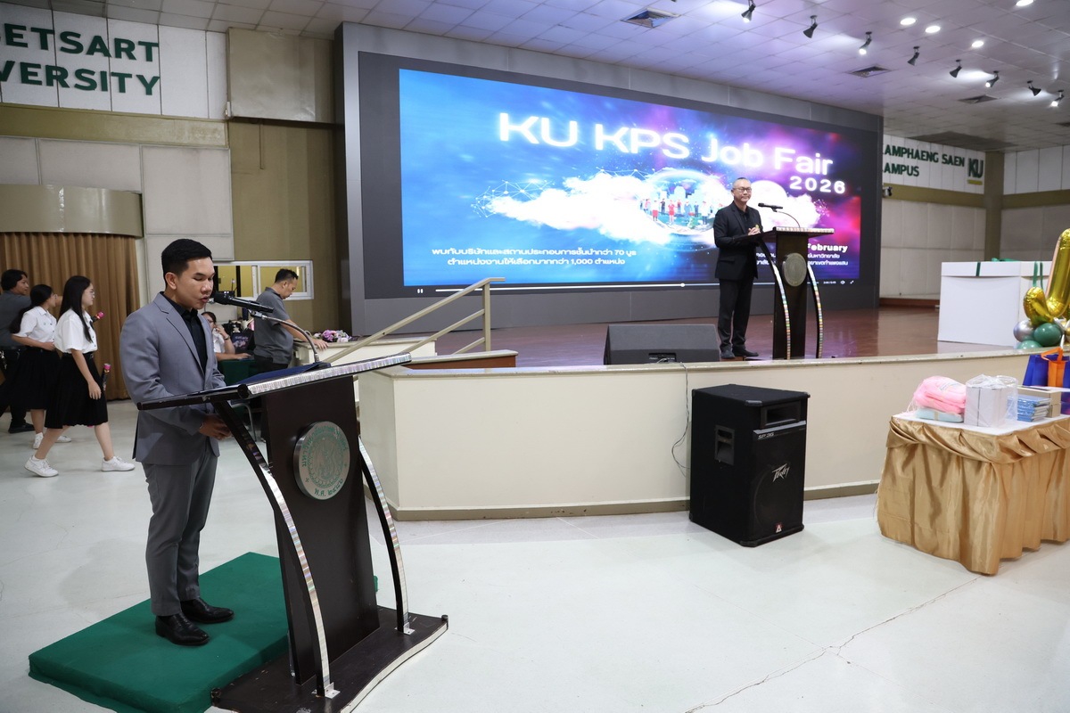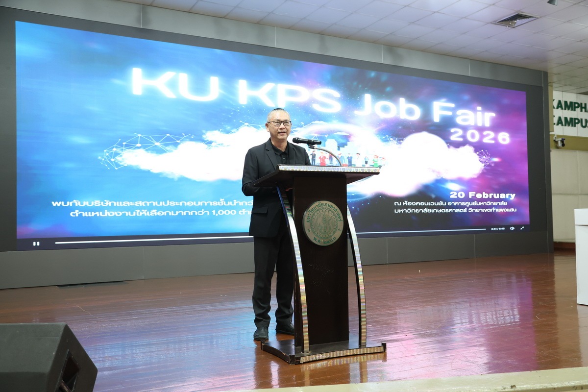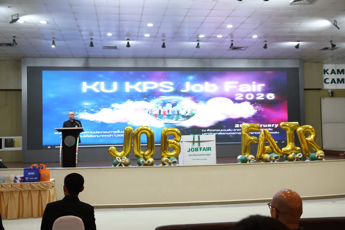 มหาวิทยาลัยเกษตรศาสตร์ วิทยาเขตกำแพงแสน จัดโครงการ KU KPS JOB FAIR 2026 โดยกองบริหารกิจการนิสิต ซึ่งได้รับเกียรติจาก รองศาสตราจารย์ นายสัตวแพทย์ ดร.อนุชัย ภิญโญภูมินทร์ รองอธิการบดีวิทยาเขตกำแพงแสน เป็นประธานในพิธีเปิดโครงการ เมื่อวันที่ 20 กุมภาพันธ์ 2569 ณ ห้องคอนเวนชั่น ศูนย์มหาวิทยาลัยเกษตรศาสตร์ วิทยาเขตกำแพงแสน