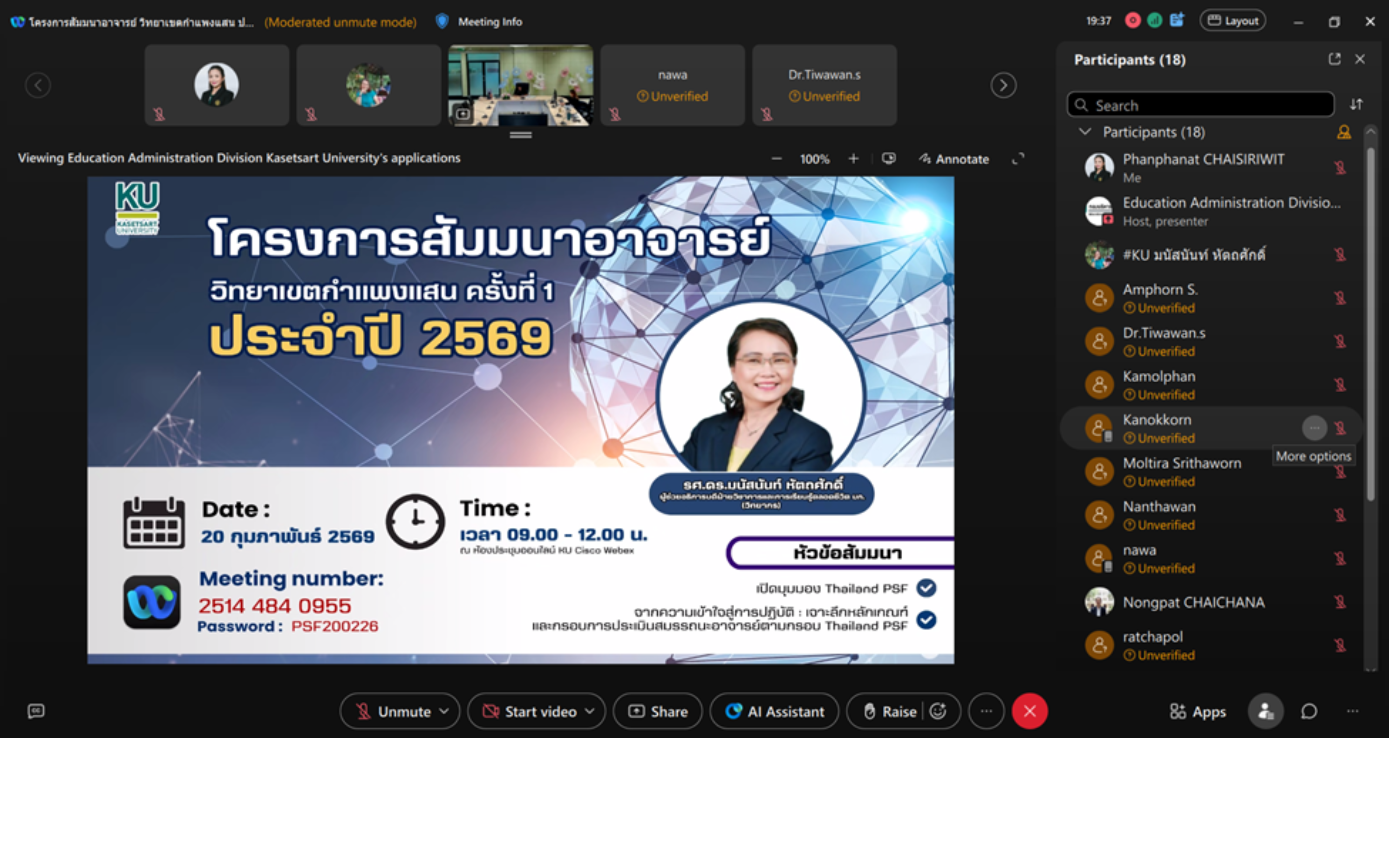 มหาวิทยาลัยเกษตรศาสตร์ วิทยาเขตกำแพงแสน จัดโครงการสัมมนาอาจารย์ วิทยาเขตกำแพงแสน ครั้งที่ 1 ภายใต้กิจกรรม “พัฒนาสมรรถนะอาจารย์ตามแนวทางการส่งเสริมคุณภาพการจัดการเรียนการสอนของอาจารย์ในสถาบันอุดมศึกษา (Thailand PSF)” โดย รองศาสตราจารย์ นายสัตวแพทย์ ดร.อนุชัย ภิญโญภูมินทร์ รองอธิการบดีวิทยาเขตกำแพงแสน เป็นประธานในพิธีเปิด และผู้ช่วยศาสตราจารย์ ดร.พจมาน พูลมี ผู้ช่วยอธิการบดีฝ่ายการศึกษาและการเรียนรู้ตลอดชีวิต วิทยาเขตกำแพงแสน เป็นผู้กล่าวรายงาน เมื่อวันศุกร์ที่ 20 กุมภาพันธ์ พ.ศ. 2569 ณ ห้องประชุมออนไลน์ KU Cisco Webex ในการนี้ ได้รับเกียรติจาก รองศาสตราจารย์ ดร.มนัสนันท์ หัตถศักดิ์ ผู้ช่วยอธิการบดีฝ่ายวิชาการและการเรียนรู้ตลอดชีวิต มหาวิทยาลัยเกษตรศาสตร์ เป็นวิทยากรบรรยายในหัวข้อ “เปิดมุมมอง Thailand PSF” และหัวข้อ “จากความเข้าใจสู่การปฏิบัติ : เจาะลึกหลักเกณฑ์และกรอบการประเมินสมรรถนะอาจารย์ตามกรอบ Thailand PSF” ซึ่งการจัดโครงการครั้งนี้มีวัตถุประสงค์เพื่อพัฒนาสมรรถนะและศักยภาพของคณาจารย์ด้านการจัดการเรียนการสอนในระดับอุดมศึกษา ให้มีคุณภาพ ทันสมัย และสอดคล้องกับบริบทของผู้เรียนในยุคปัจจุบัน ตลอดจนเตรียมความพร้อมในการพัฒนาตนเอง และการจัดทำเอกสารหรือผลงานประกอบการประเมินสมรรถนะอย่างเป็นระบบ นอกจากนี้ ยังมุ่งส่งเสริมให้อาจารย์มีความรู้ความเข้าใจด้านระเบียบ ข้อบังคับ และแนวปฏิบัติทางวิชาการ ทั้งในระดับปริญญาตรีและระดับบัณฑิตศึกษา เพื่อให้สามารถนำไปใช้ในการปฏิบัติงานได้อย่างถูกต้อง เป็นมาตรฐานเดียวกัน และลดความคลาดเคลื่อนที่อาจเกิดขึ้นจากการดำเนินงานทางวิชาการ อันจะนำไปสู่การยกระดับคุณภาพการจัดการเรียนการสอนของวิทยาเขตกำแพงแสนอย่างยั่งยืนต่อไป