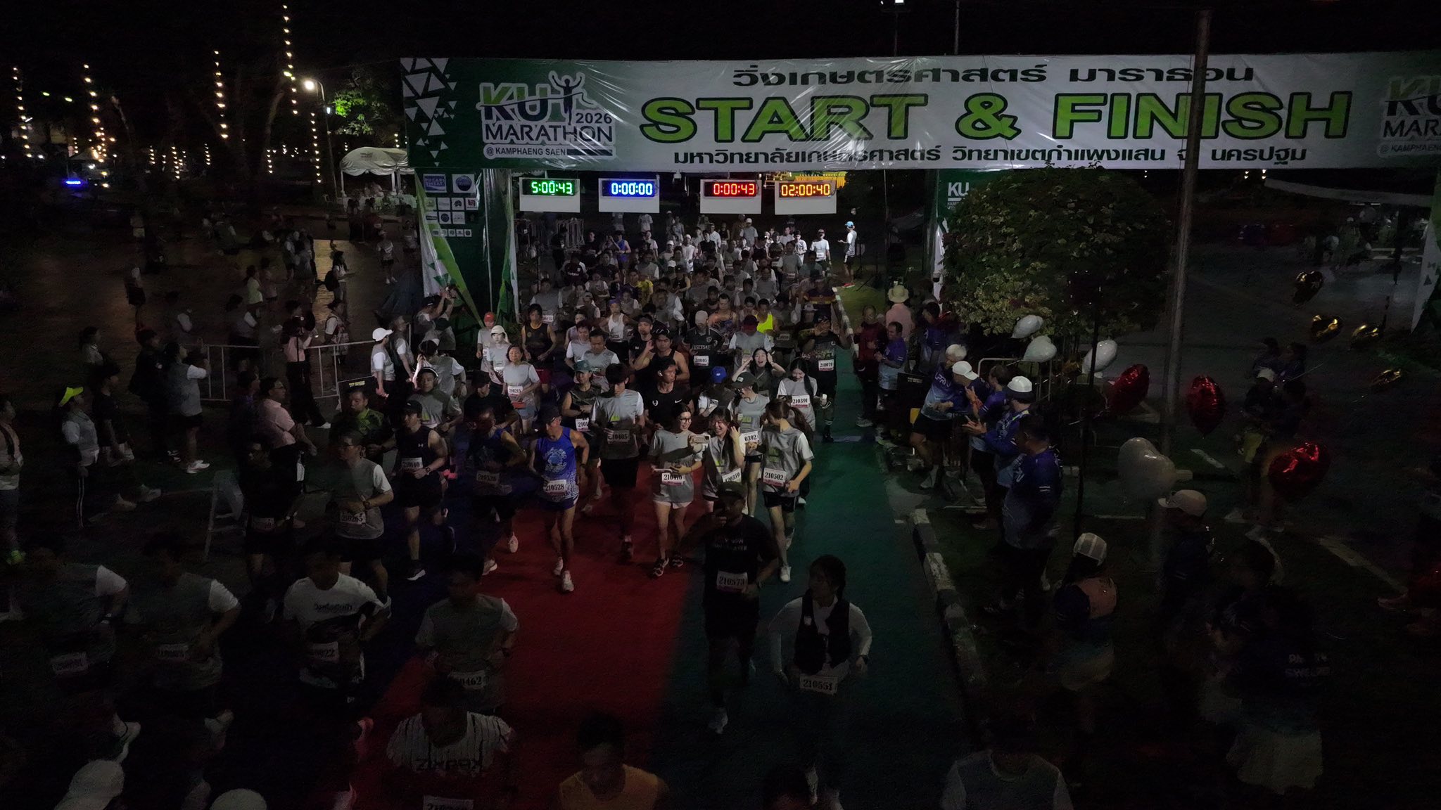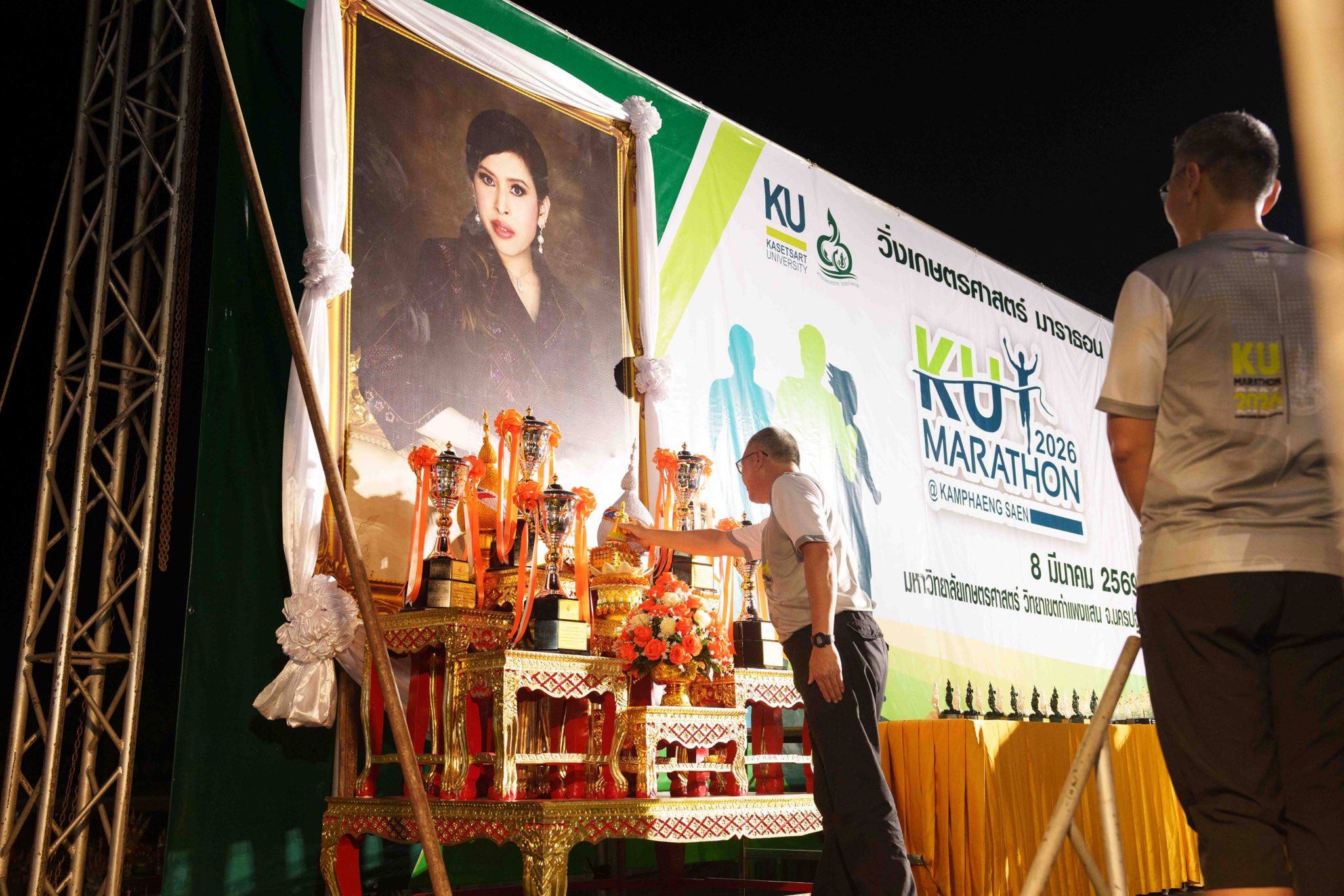 มหาวิทยาลัยเกษตรศาสตร์ วิทยาเขตกำแพงแสน ได้จัดโครงการเดิน-วิ่ง เกษตรศาสตร์มาราธอน "KU MARATHON 2026" เมื่อวันอาทิตย์ที่ 8 มีนาคม 2569 โดยได้รับเกียรติจาก รองศาสตราจารย์ นายสัตวแพทย์ ดร.อนุชัย ภิญโญภูมิมินทร์ เป็นประธานในพิธีเปิดโครงการ สำหรับการจัดการแข่งขัน KU MARATHON 2026 แบ่งการแข่งขันออกเป็น 4 ประเภท ได้แก่ 1) Fun Run ระยะทาง 5 กิโลเมตร 2) Mini Marathon ระยะทาง 10 กิโลเมตร 3) Half Marathon ระยะทาง 21.5 กิโลเมตร 4) Marathon ระยะทาง 42.195 กิโลเมตร โดยมีนักกีฬาที่เข้าร่วมการแข่งขันในครั้งนี้ รวมถึงคณะผู้บริหาร คณาจารย์ บุคลากร และนิสิต มากกว่า 2,000 คน การจัดโครงการในครั้งนี้มีวัตถุประสงค์เพื่อร่วมเฉลิมฉลองครบรอบ 46 ปี มหาวิทยาลัยเกษตรศาสตร์ วิทยาเขตกำแพงแสน และเพื่อส่งเสริมให้บุคลากร นิสิต และประชาชนทั่วไป ออกกำลังกายเพื่อสุขภาพที่ดี อีกทั้งยังเป็นการส่งเสริมการท่องเที่ยวเชิงกีฬาภายในวิทยาเขต พร้อมกันนี้ยังมีการแสดงดนตรีจากนิสิตมาสร้างบรรยากาศสนุกสนานภายในงานอีกด้วย
